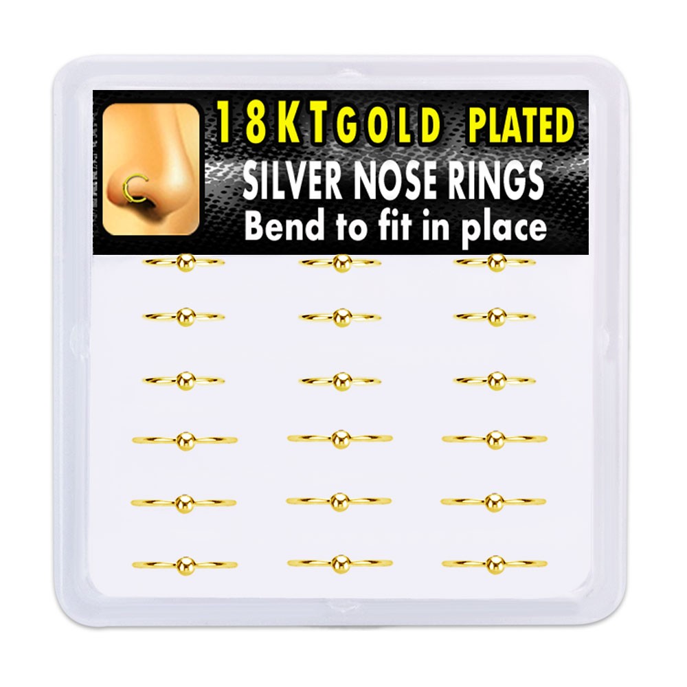 18 PIECE DISPLAY - 18K GOLD PLATED N0SE HOOPS