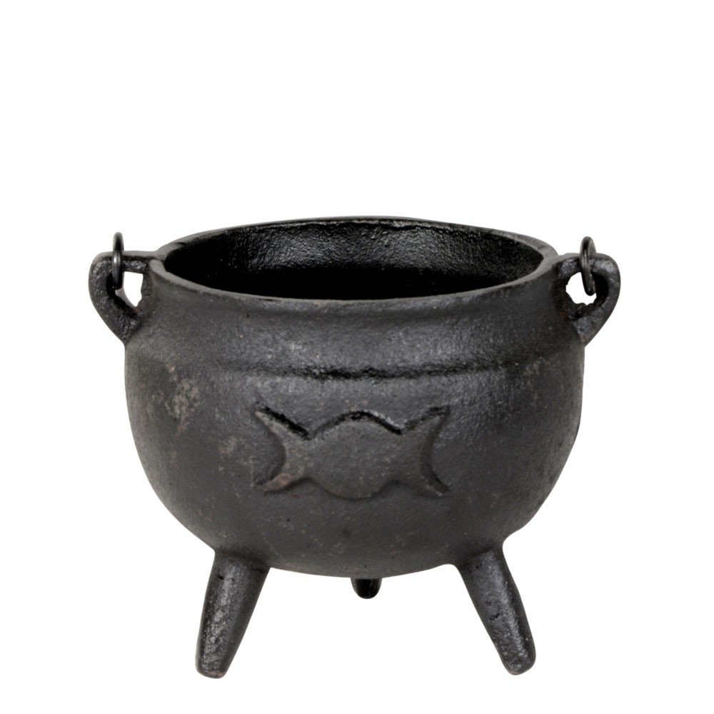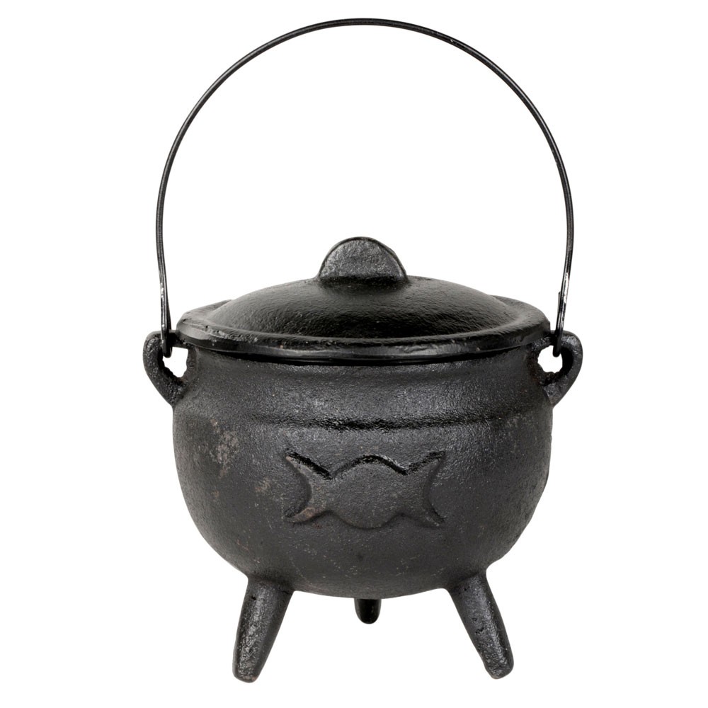 TRIPLE MOON CAST IRON CAULDRON WITH LID
