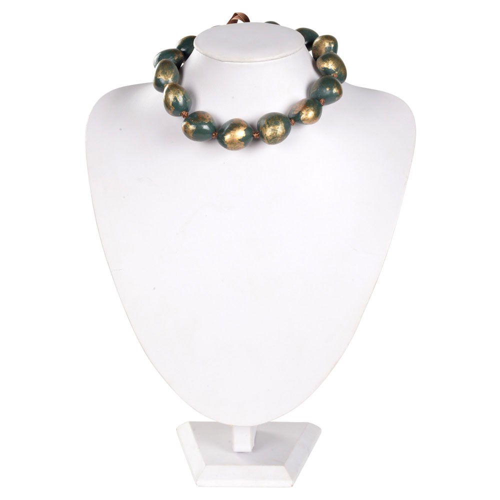 GOLD SPLASH KUKUI NUT NECKLACE (14) HUNTER GREEN