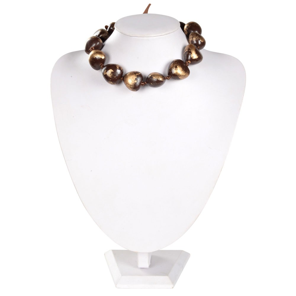 GOLD SPLASH KUKUI NUT NECKLACE (14) BROWN