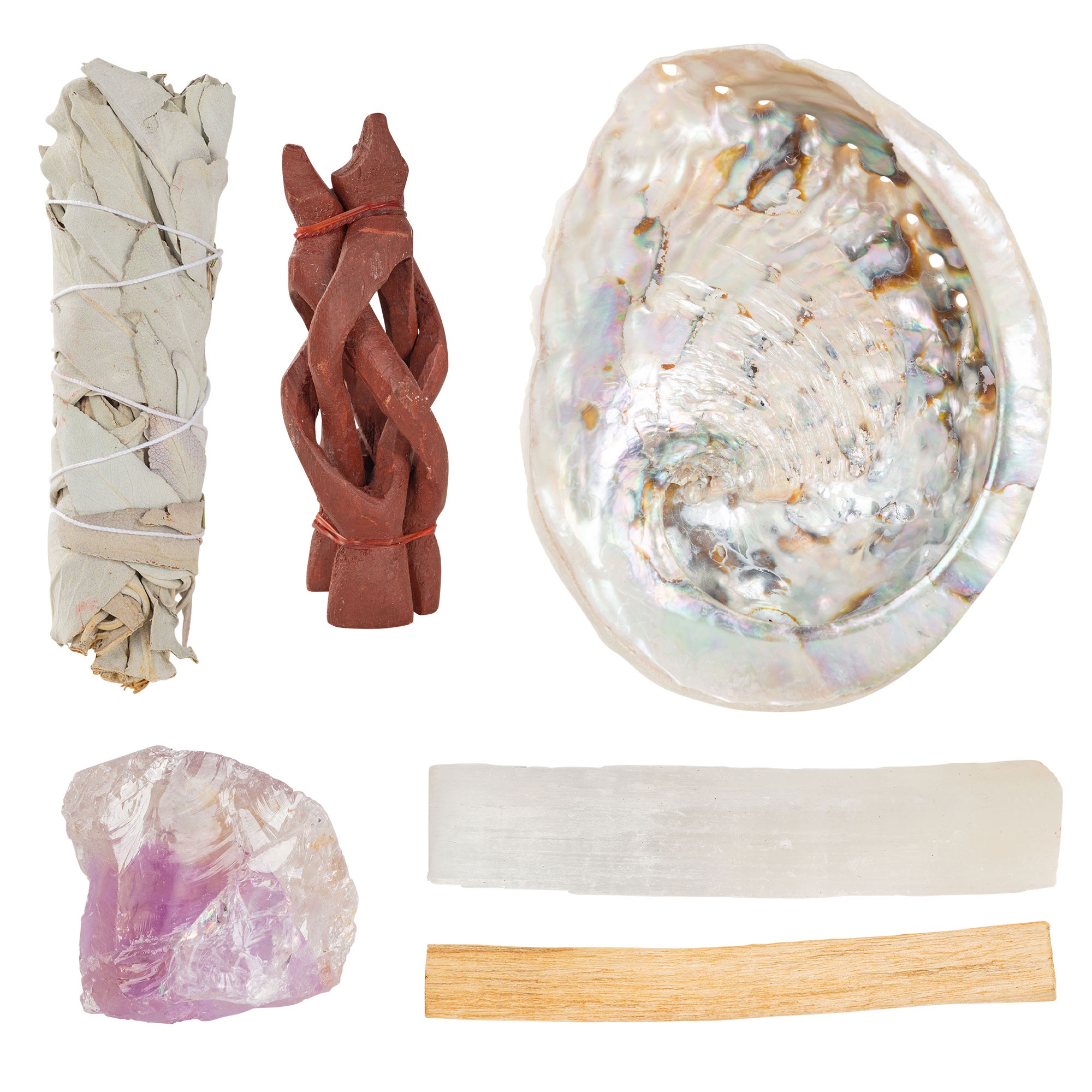 With Abalone Shell and Stand, Sage, Palo Santo, Selenite and Amethyst Druzy