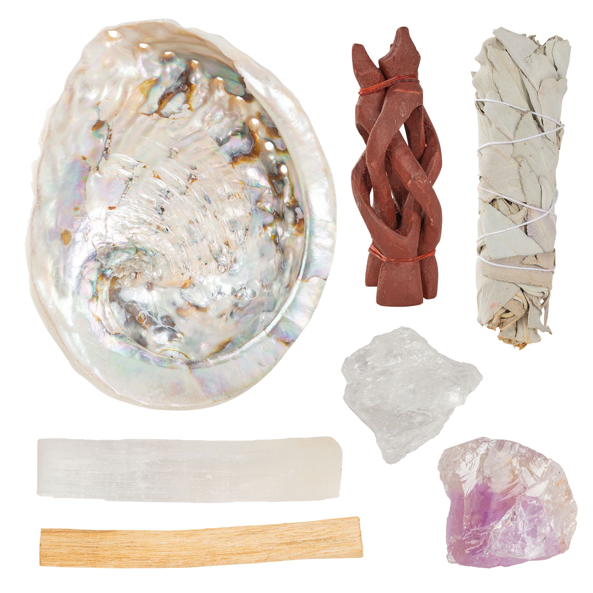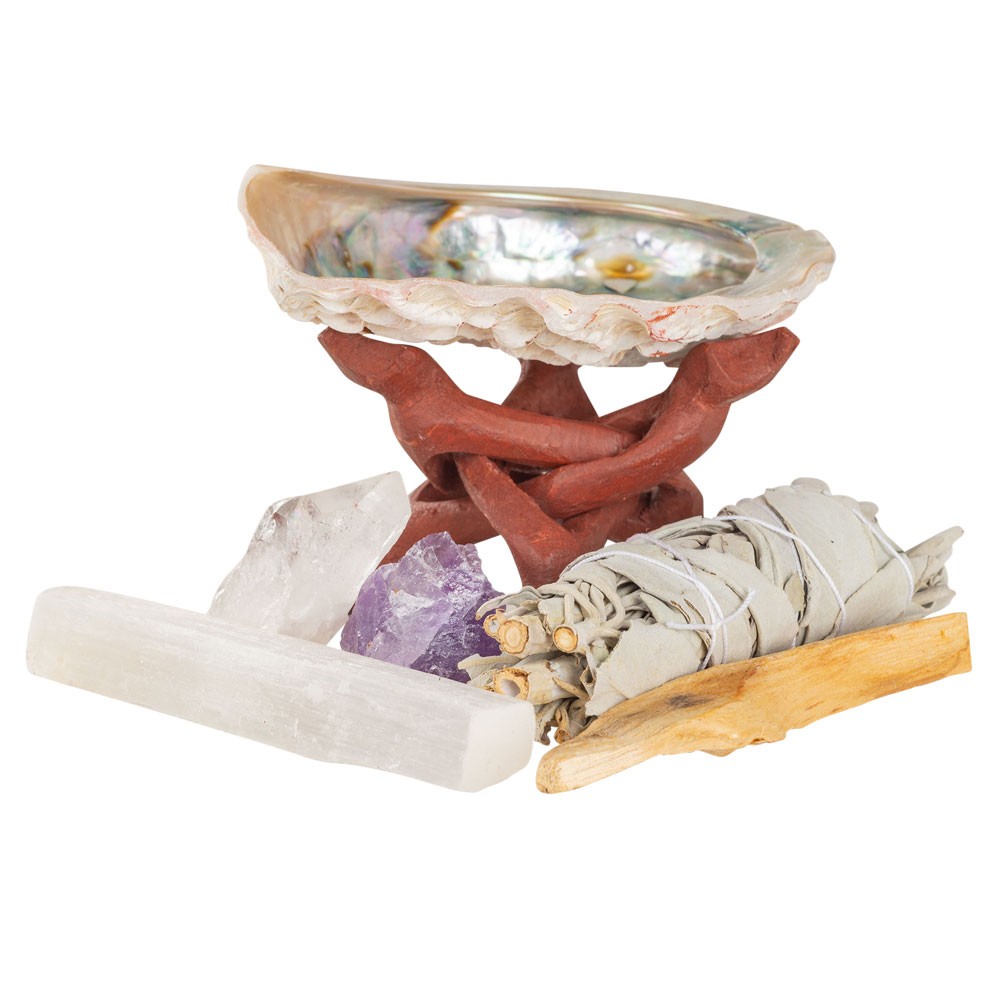 With Abalone Shell and Stand, Sage, Palo Santo, Selenite, Clear Quartz, and Amethyst