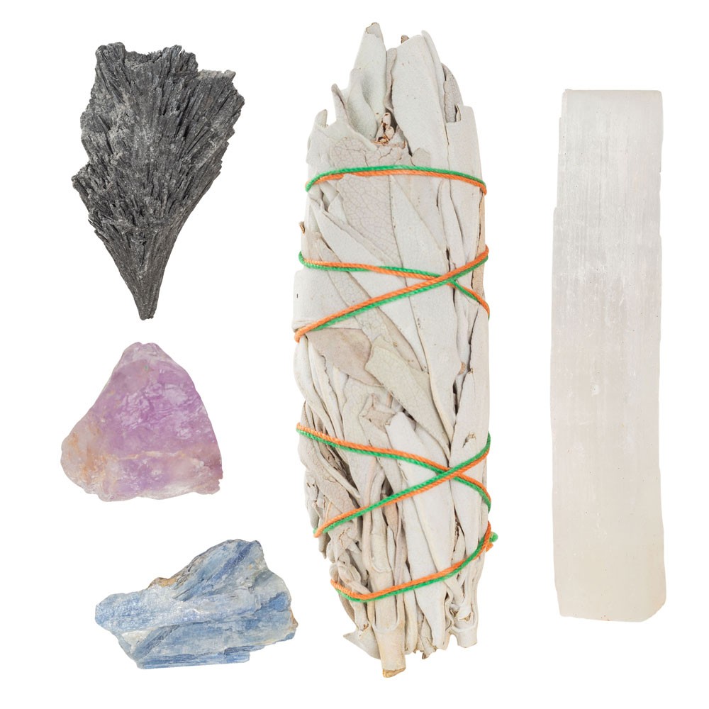 With Sage, Selenite, Blue and Black Kyanite, and Amethyst