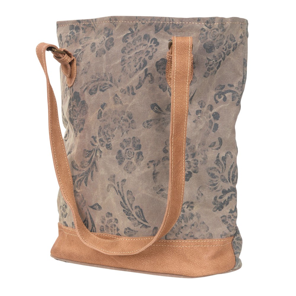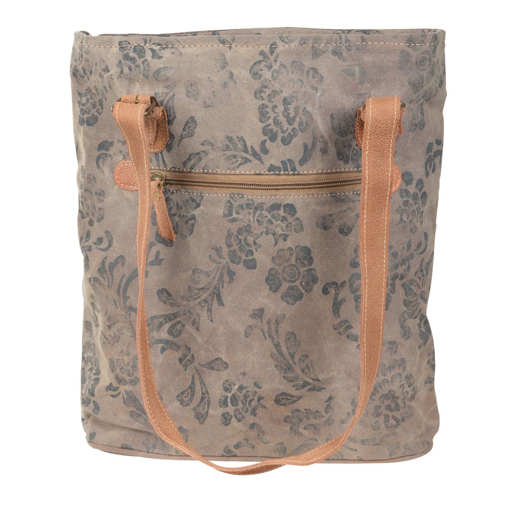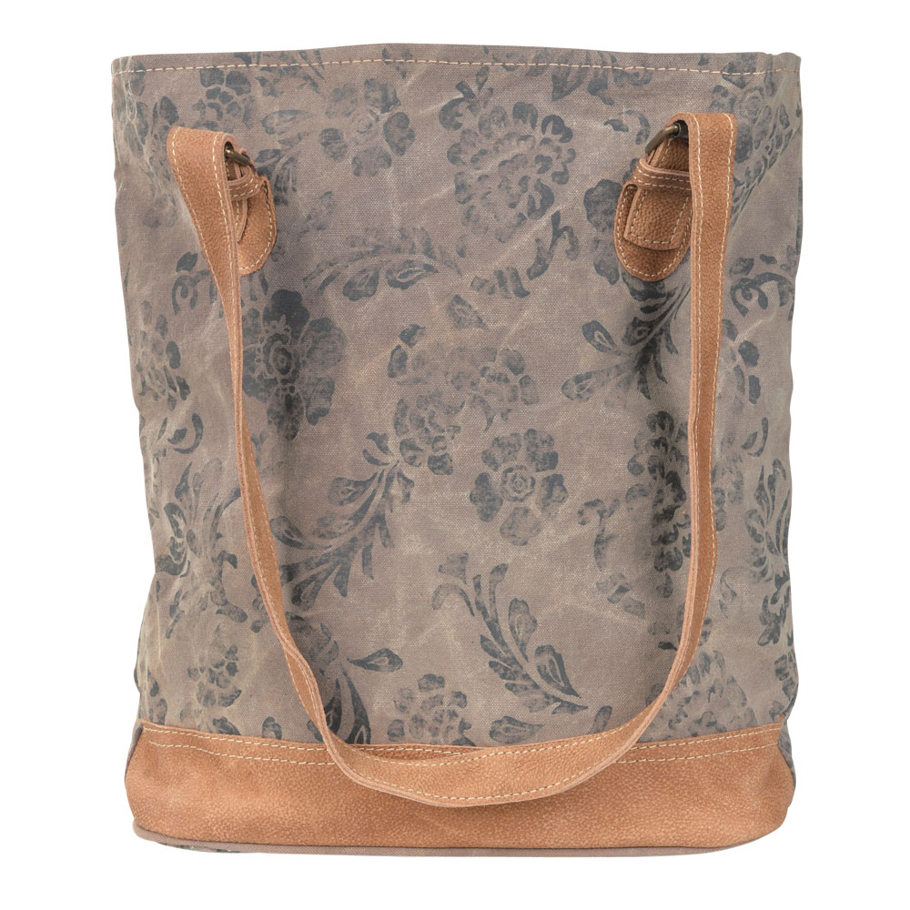 BROWN CANVAS WITH BLACK FLORAL PRINT SHOULDER BAG