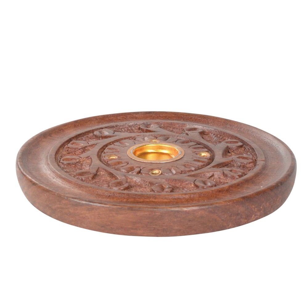3.75" CIRCULAR WOODEN ASHCATCHER WITH A FLOWER