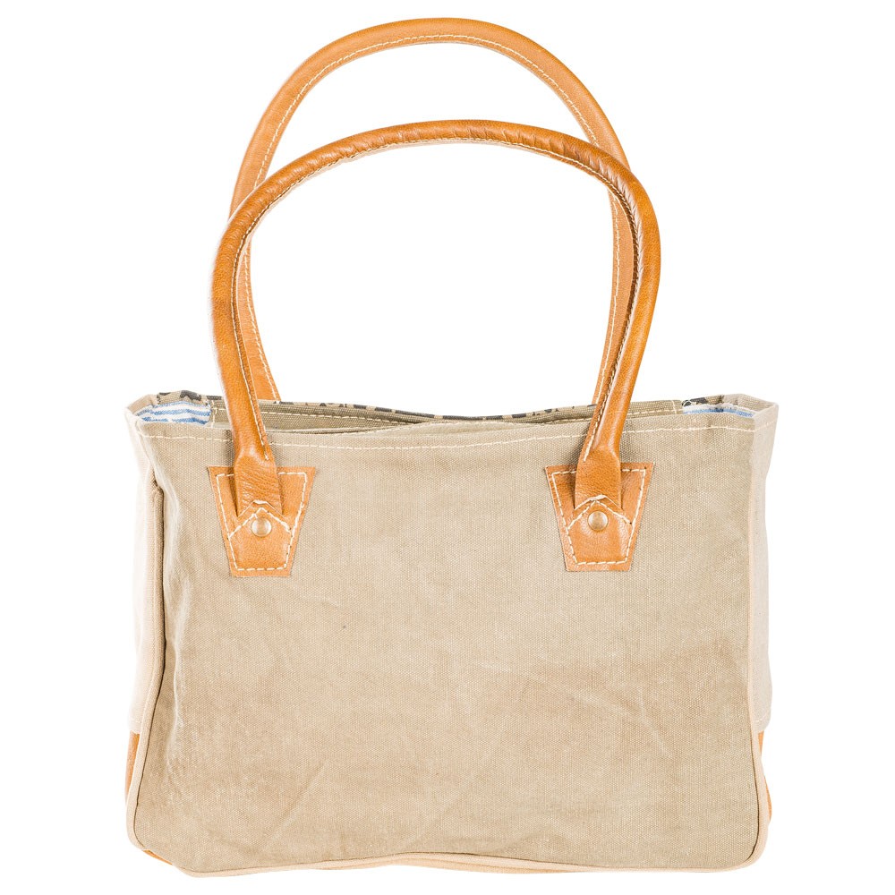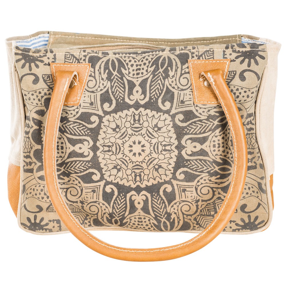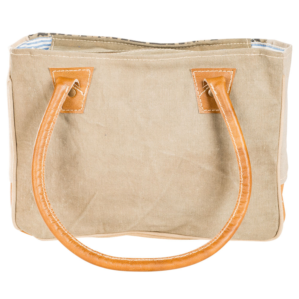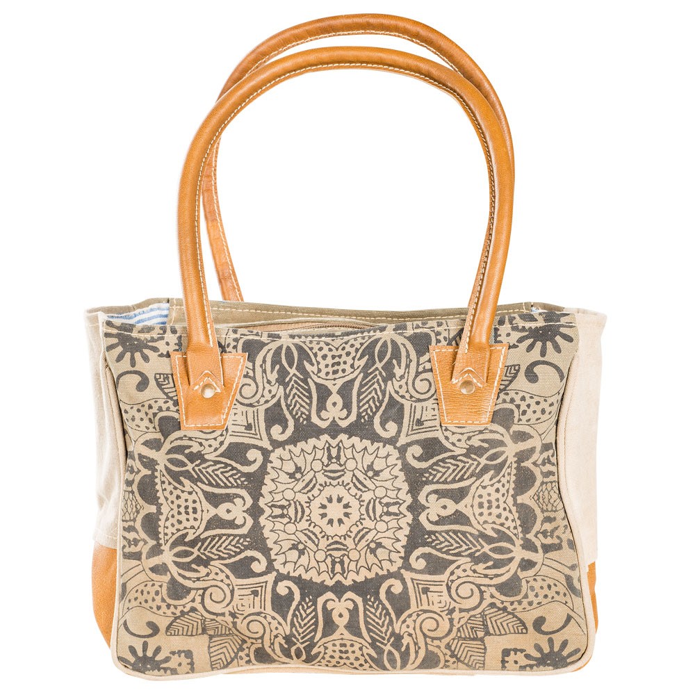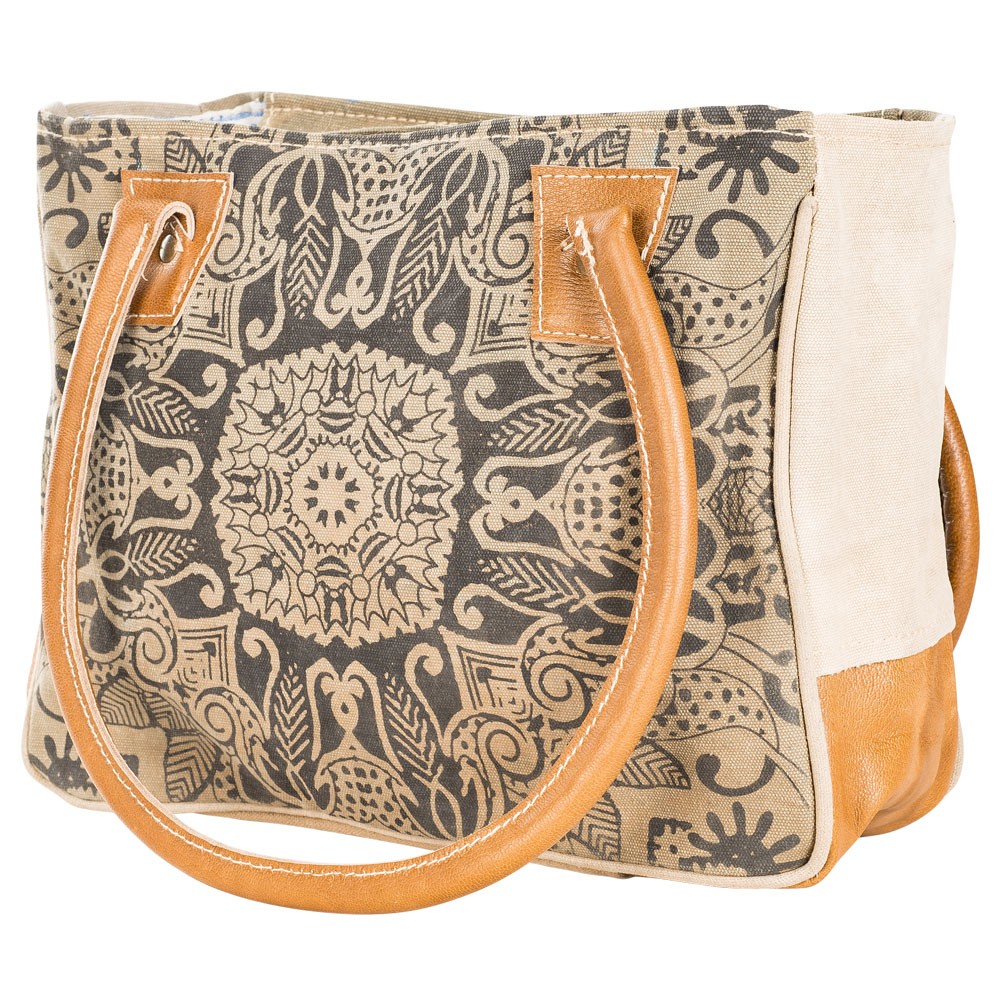TAN CANVAS SHOULDER BAG WITH PRINT