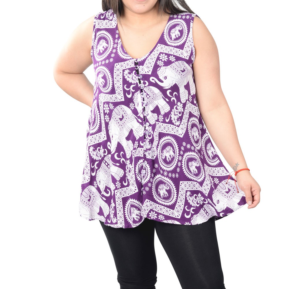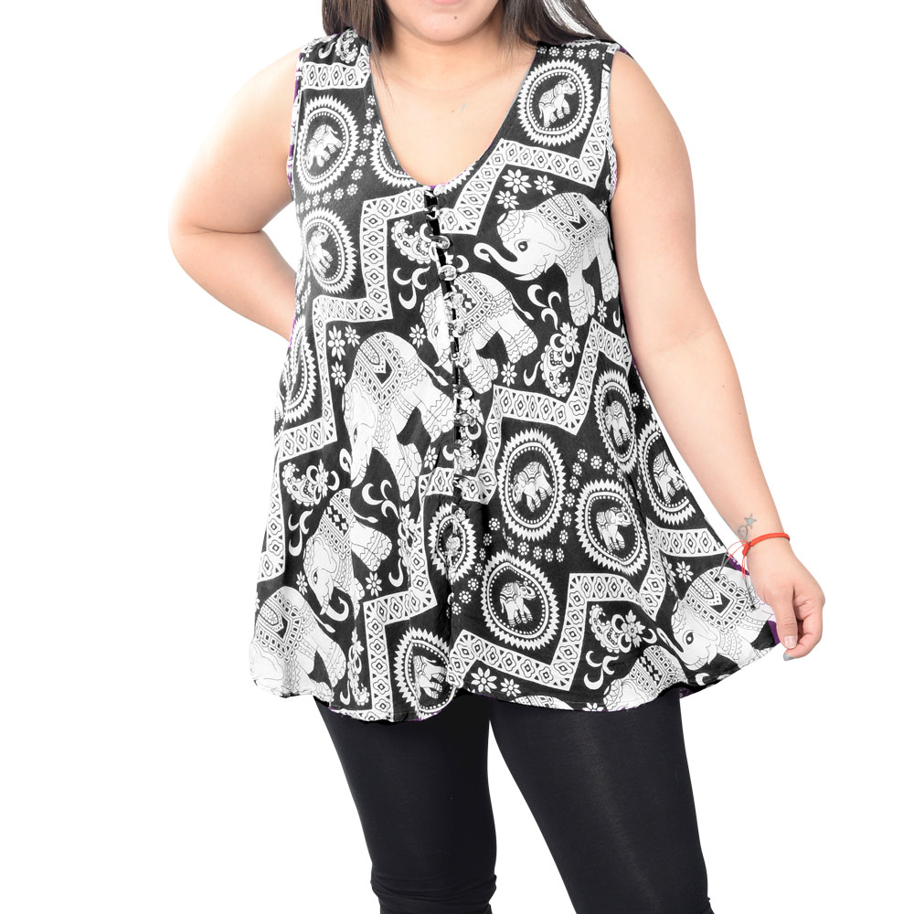 SLEEVELESS ELEPHANT PATTERN SHIRT