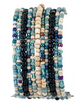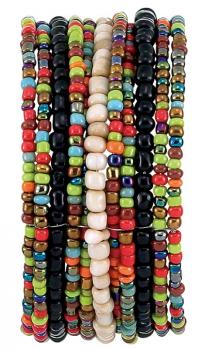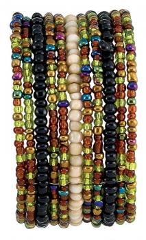 ASSORTED MIX BEADED CUFF WITH NATURAL STRIPE BRACELETS
