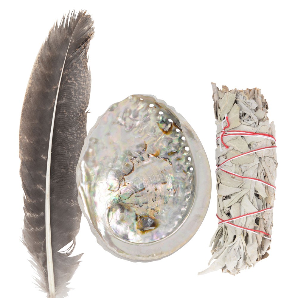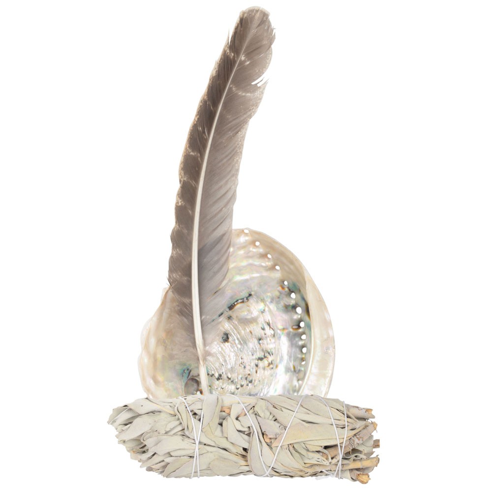 SMUDGING KITS WITH BARRED TURKEY FEATHER & ABALONE SHELL