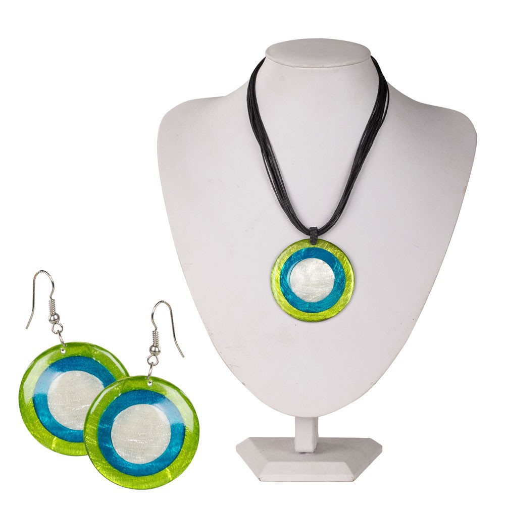 GREEN/BLUE/WHITE NECKLACE AND EARRING SET
