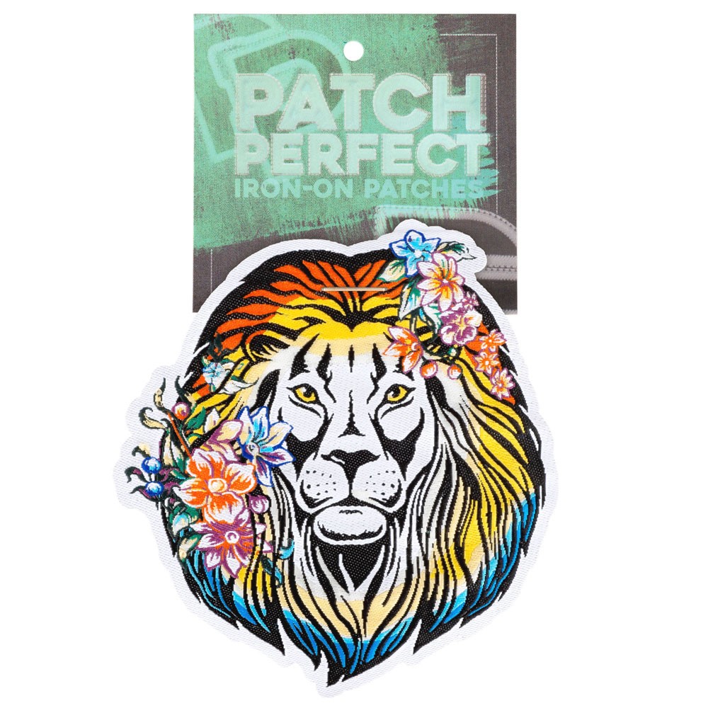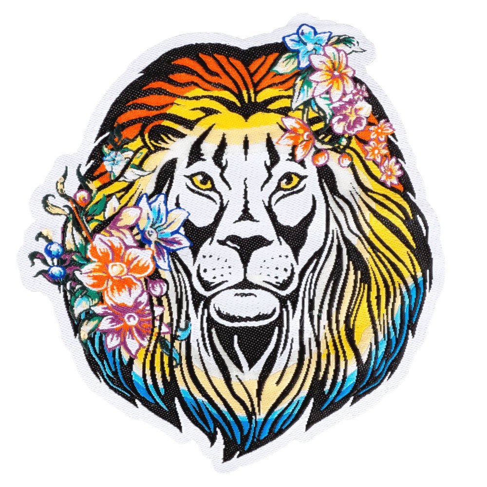 LION WITH FLOWERS EMBROIDERED PATCH