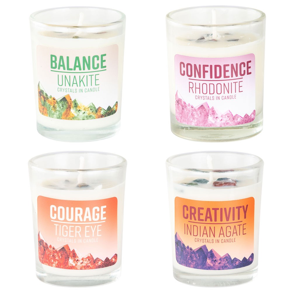 Balance - Unakite and Essential Oils of Bergamot and Lavender Cleansing - Fluorite and Essential Oils of Lemongrass and Eucalyptus Confidence - Rhodonite and Essential Oils of Patchouli and Orange Courage - Tiger Eye and Essential Oils of Cedarwood and Lavender Creativity - Indian Agate and Essential Oils of Peppermint and Eucalyptus Friendship - Lapis and Essential Oils of Geranium and Ylang Ylang Intuition - Sodalite and Essential Oils of Lavender and Frankincense Inner Peace - Turquoise and Essential Oils of Orange and Ylang Ylang Love - Rose Quartz and Essential Oils of Lavender, Orange, and Ylang Ylang Peace - Amethyst and Essential Oils of Spearmint and Patchouli Prosperity - Green Aventurine and Essential Oils of Frankincense and Orange Protection - Hematite and Essential Oils of Eucalyptus and Grapefruit Stability - Green Jade and Essential Oils of Grapefruit and Sage Tranquility - Red Jasper and Essential Oils of Orange and Tea Tree Transition - Opalite and Essential Oils of Ylang Ylang and Bergamot Wisdom - Malachite and Essential Oils of Peppermint and Lime Willpower - Labradorite and Essential Oils of Lime and Orange