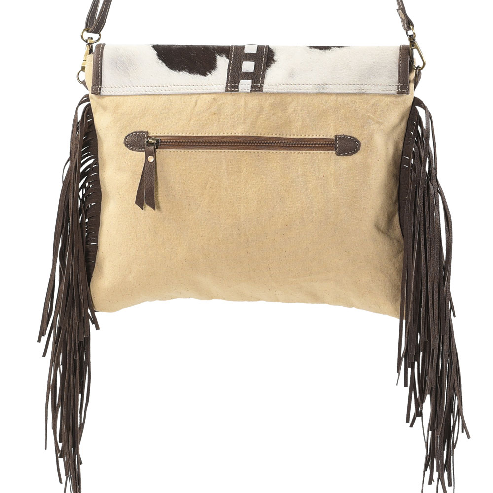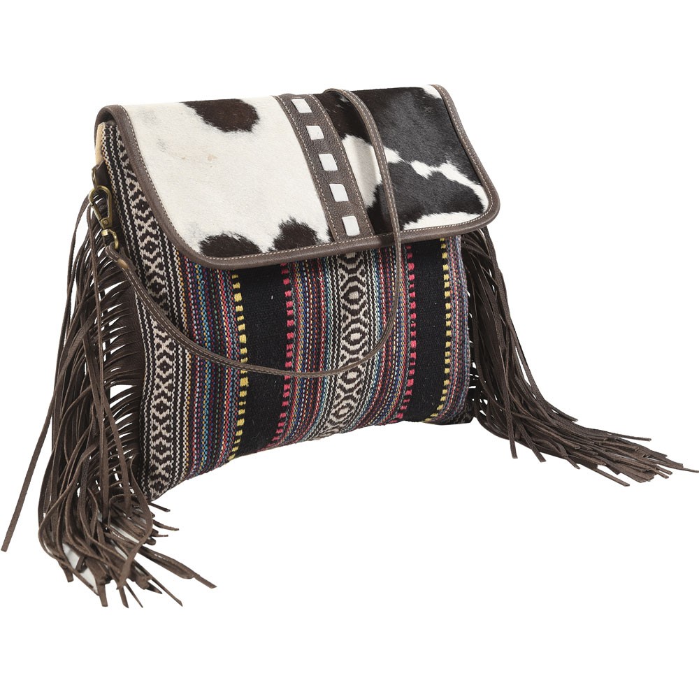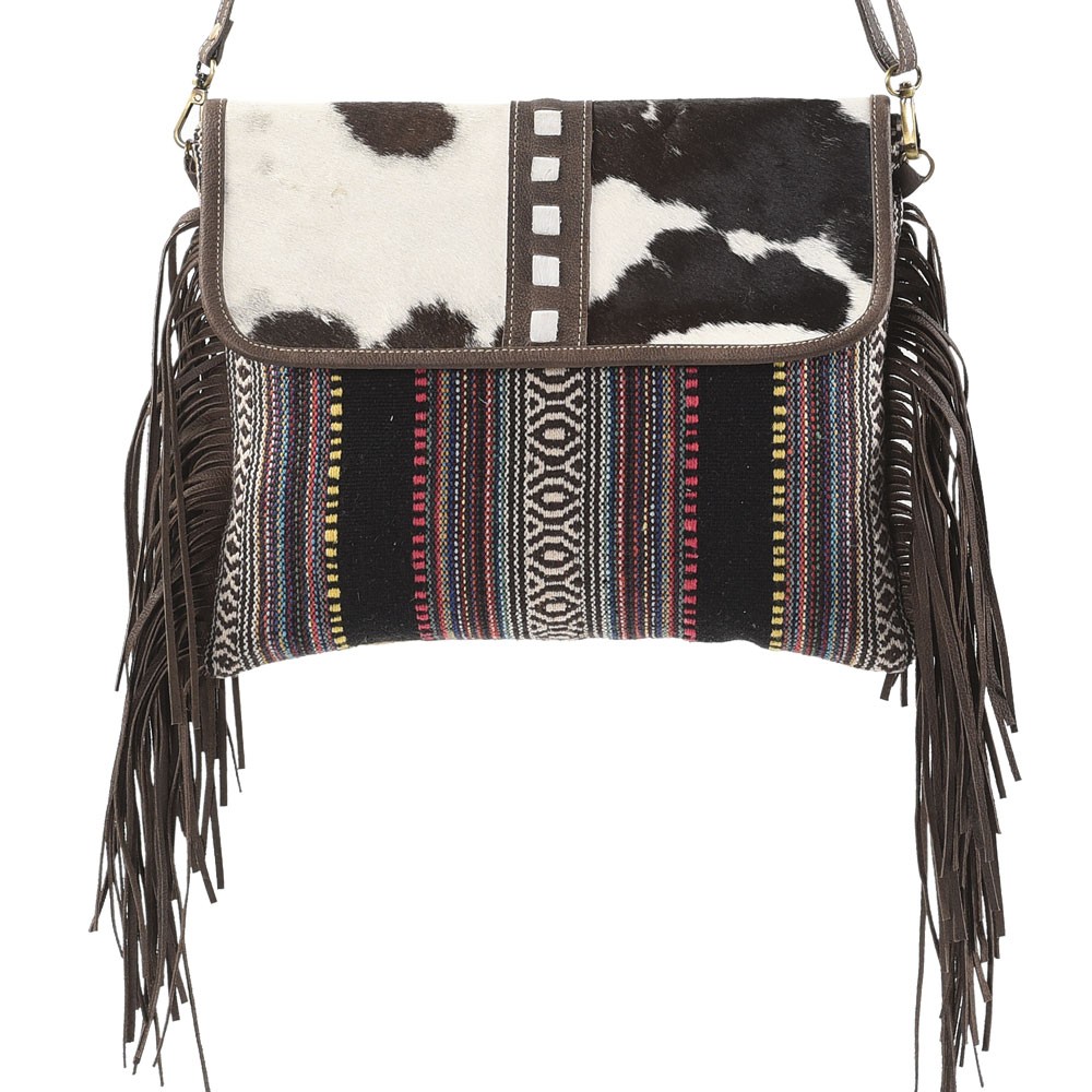 BLACK STRIPES CROSSBODY WITH FRING AND FUR CLOSURE