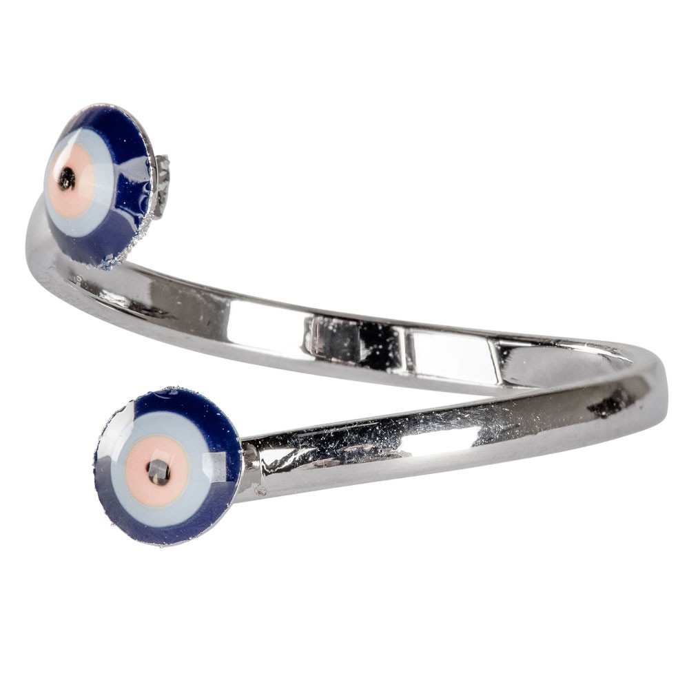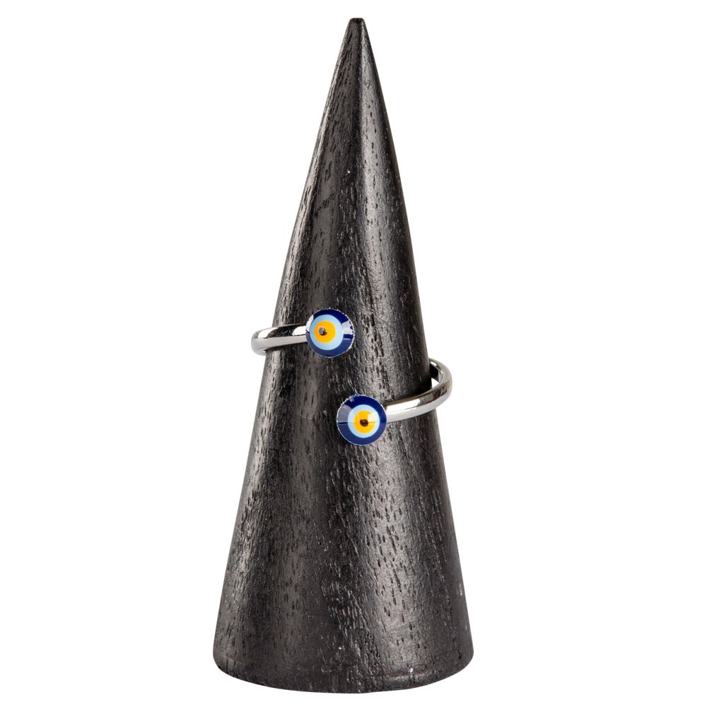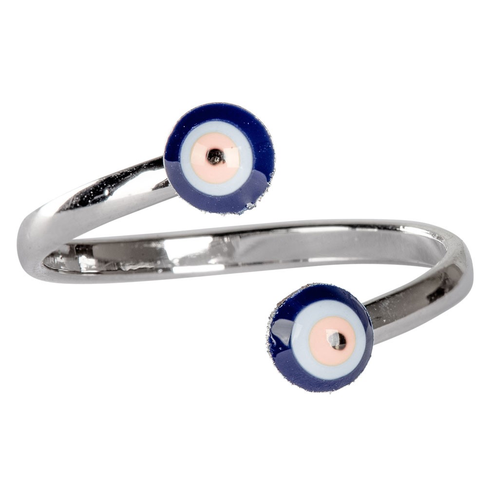 DOUBLE EVIL EYE ADJUSTABLE RING SILVER