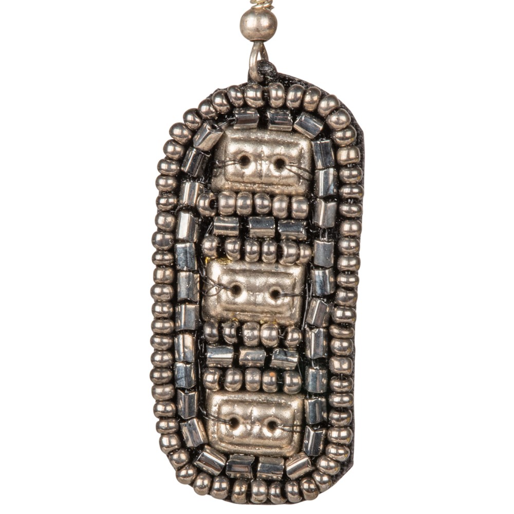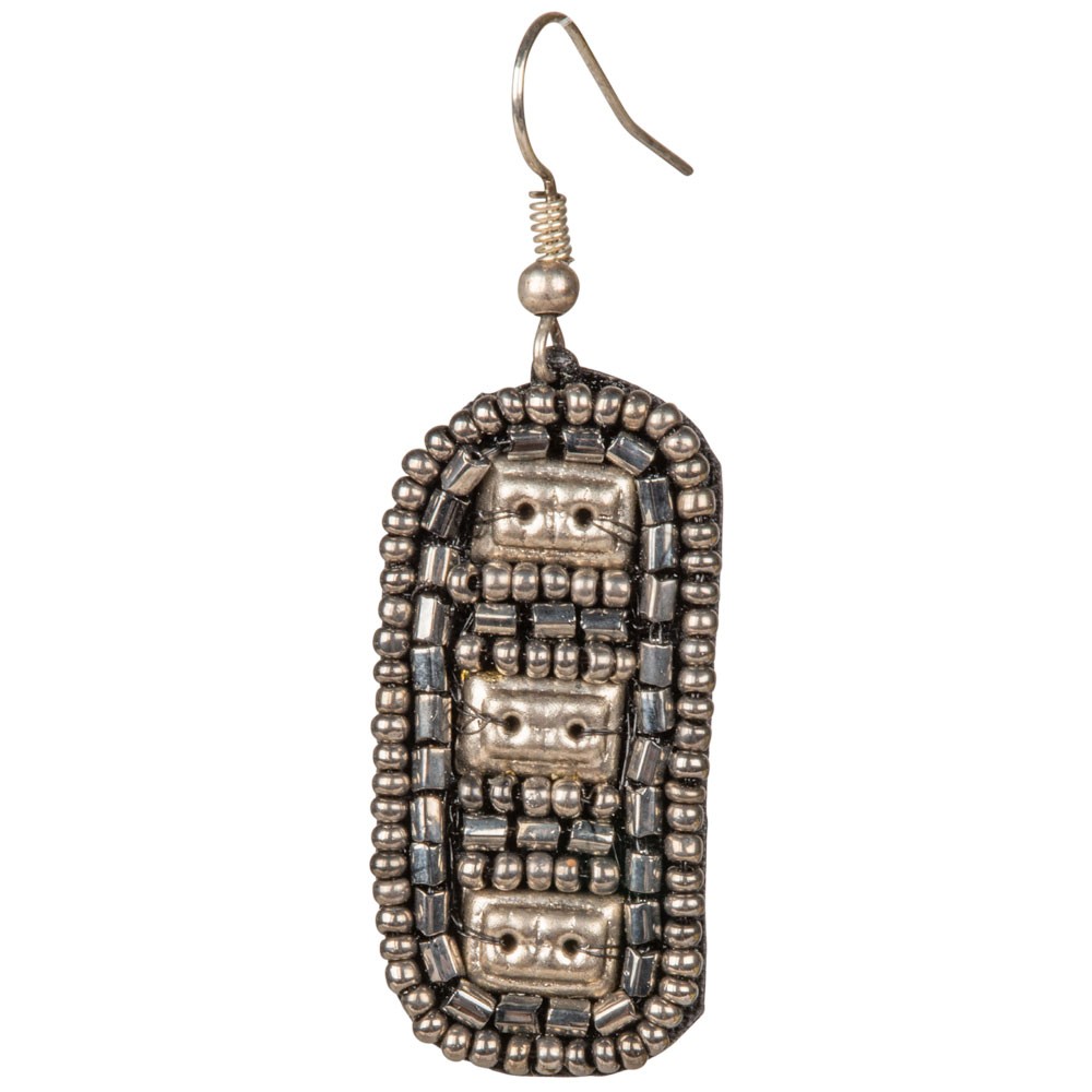 PEWTER RECTANGLE BEADED EARRINGS