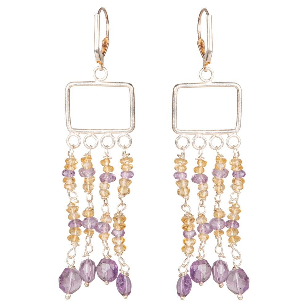 STERLING SILVER RECTANGLE CHANDELIER EARRINGS