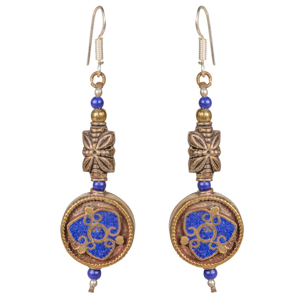 LAPIS ROUND BRASS INLAID FLOWE