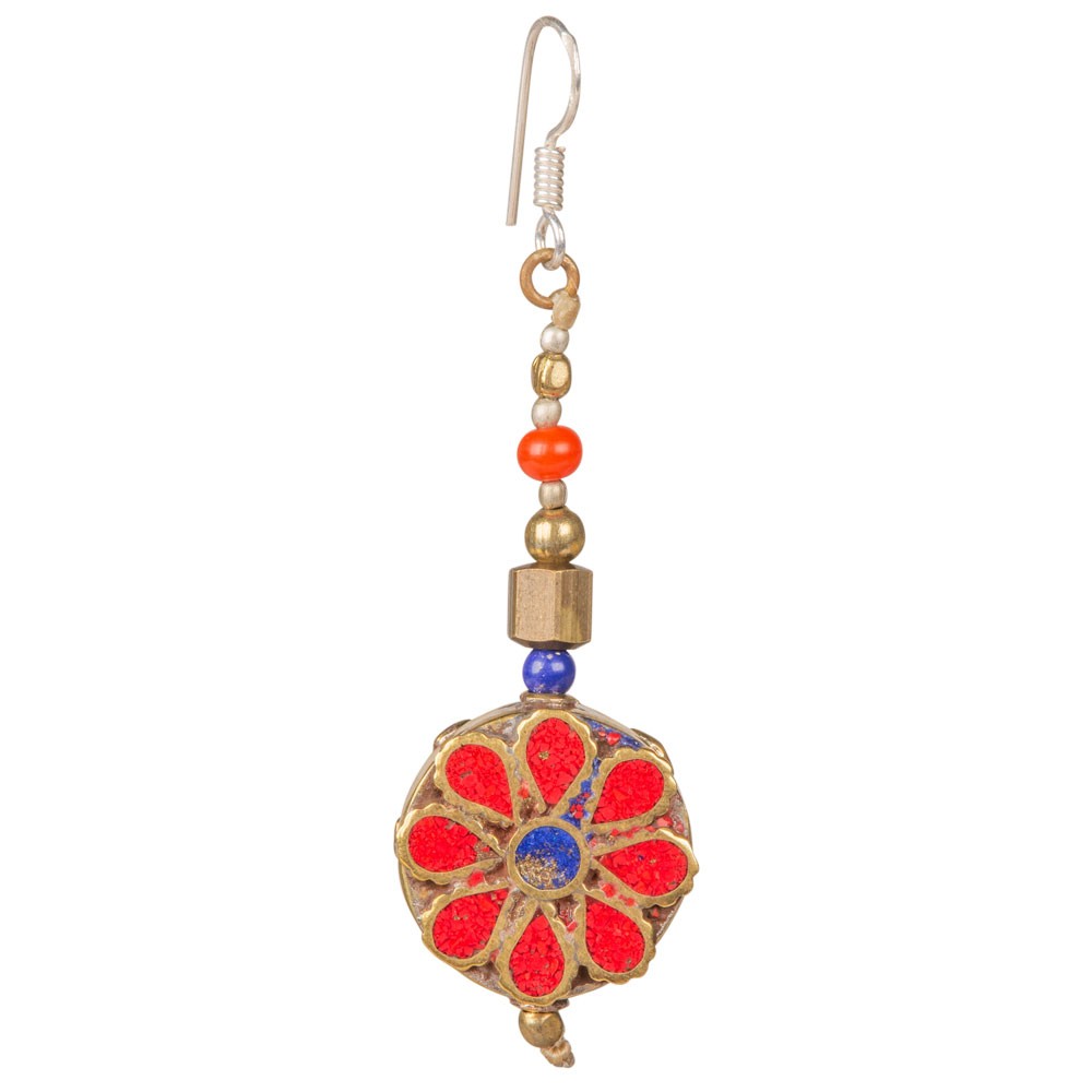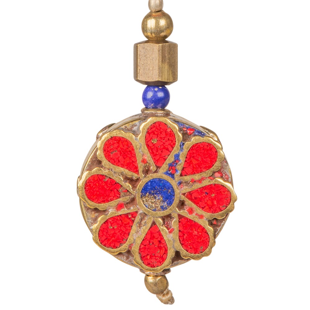 CORAL/LAPIS ROUND BRASS INLAID