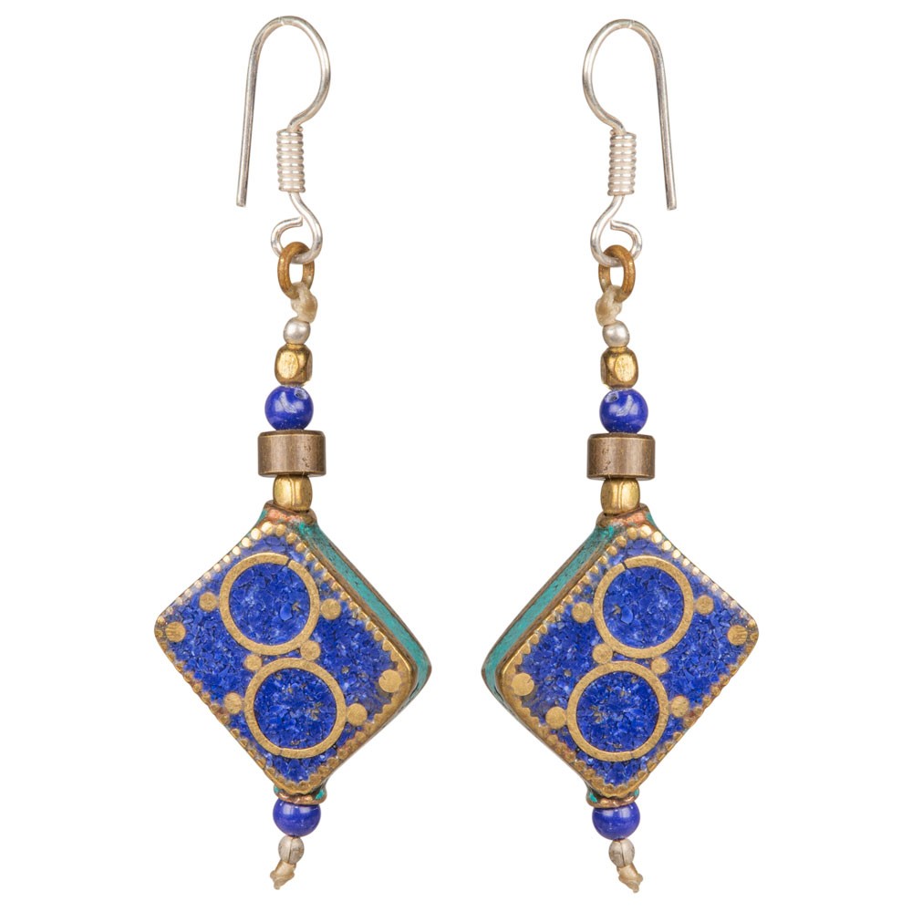 LAPIS/TQ DIAMOND BRASS INLAID NEPALI EARRINGS (TEAR DROP)