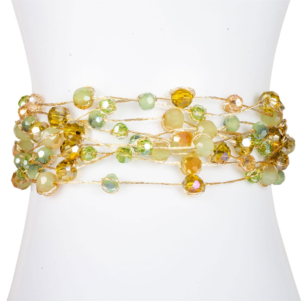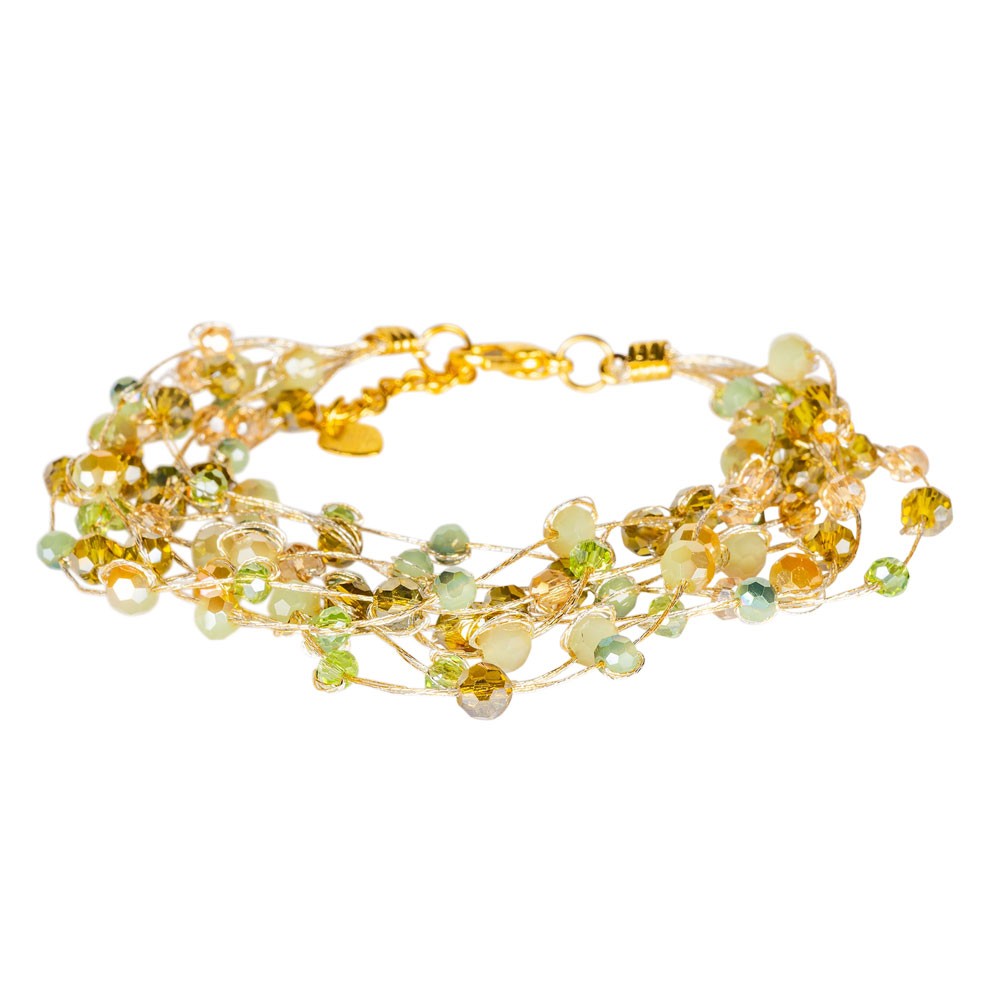 9 STRAND BRACELET ON SILK PERIDOT
