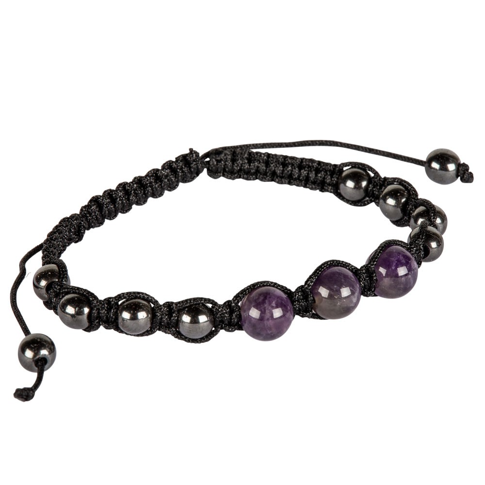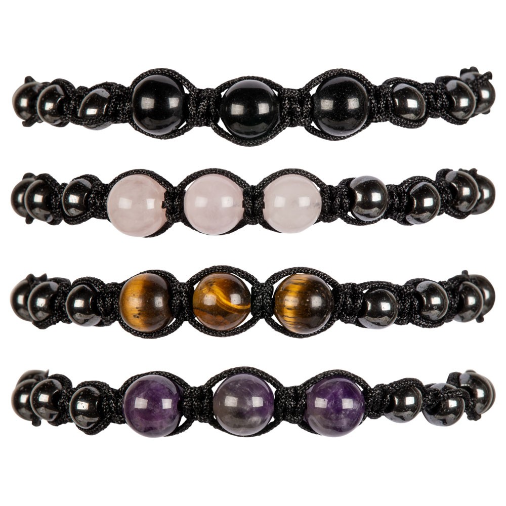 ADJUSTABLE HEMATITE & GEMSTONE BEADED BRACELET