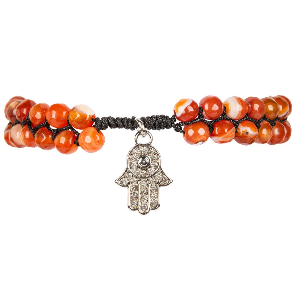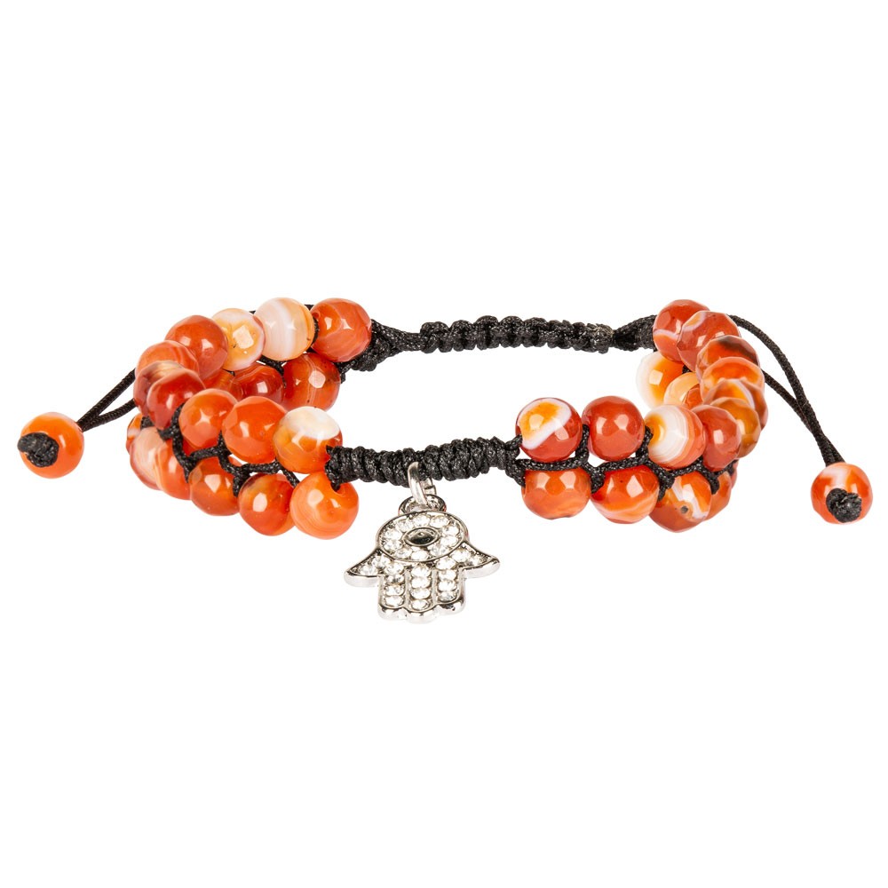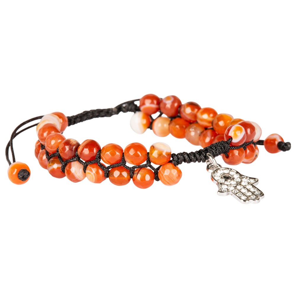 ADJUSTABLE RED AGATE BRACELET WITH HAMSA PENDANT