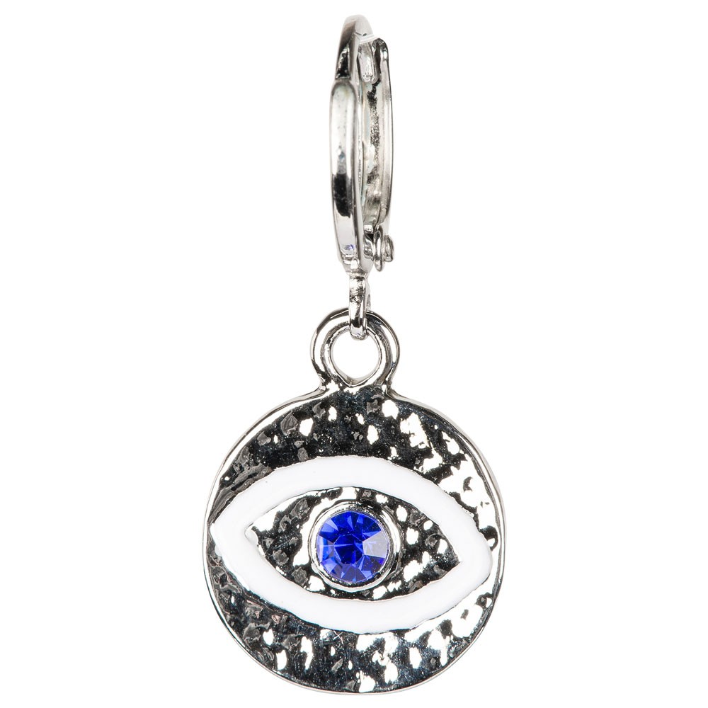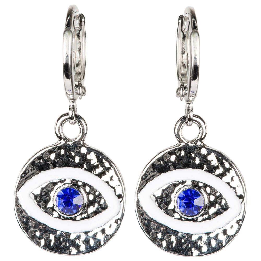 EVIL EYE EARRINGS WITH WITH BLUE STONES AND SILVER FINISH