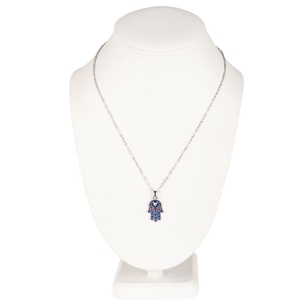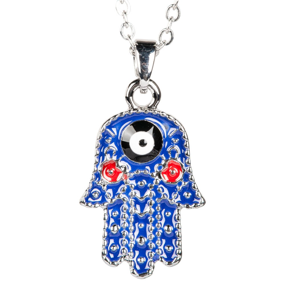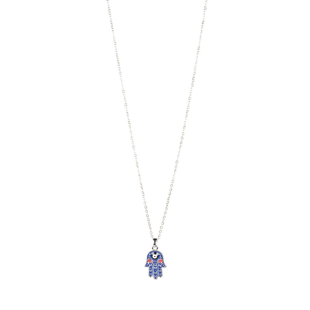 SILVER NECKLACE WITH COLORED EVIL EYE HAMSA CHARM