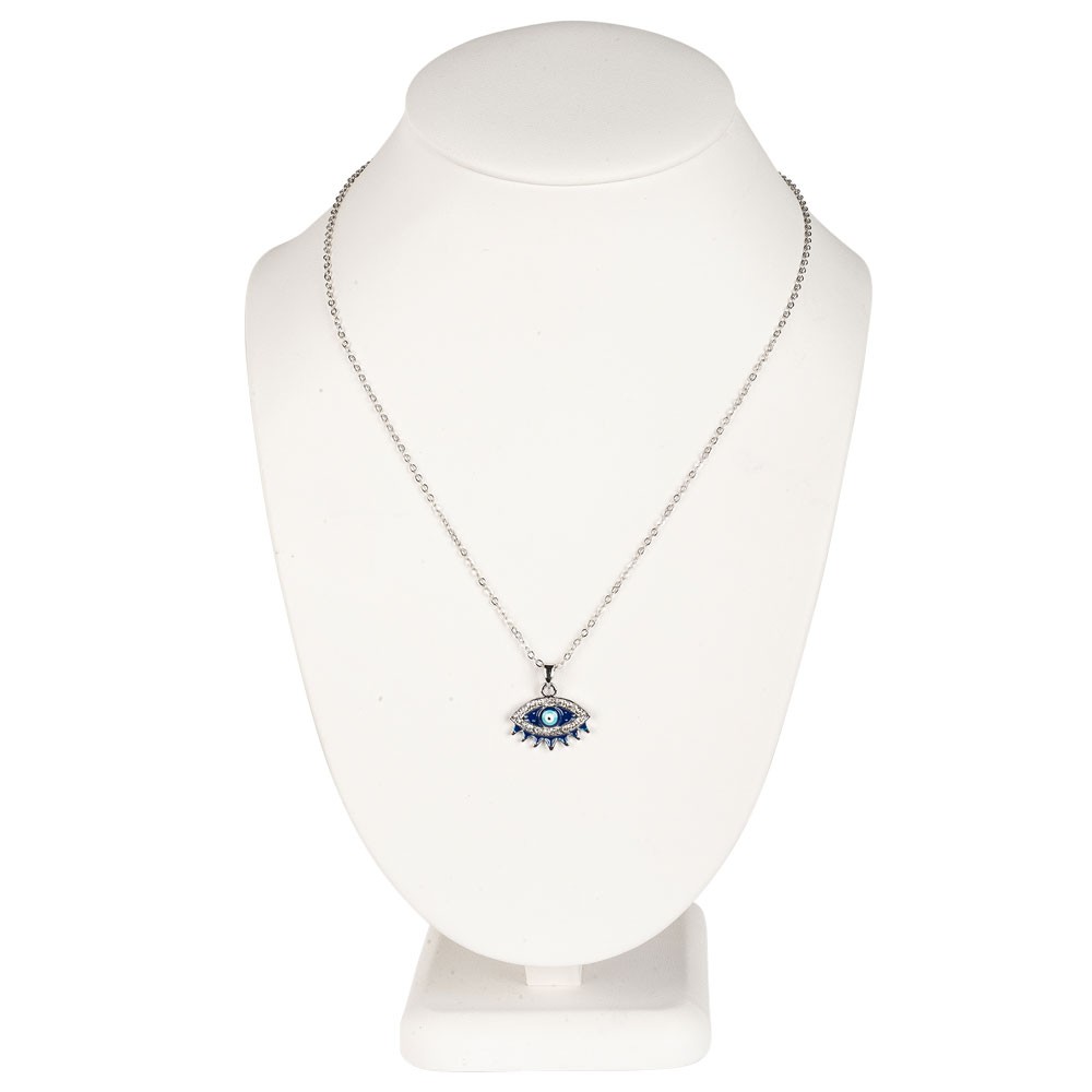 SILVER EVIL EYE CHARM NECKLACE WITH RHINESTONES