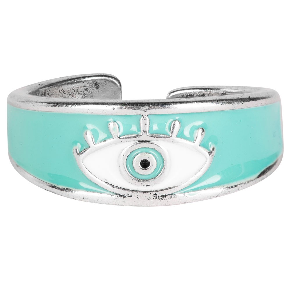 WIDE BAND EVIL EYE ADJUSTABLE RING