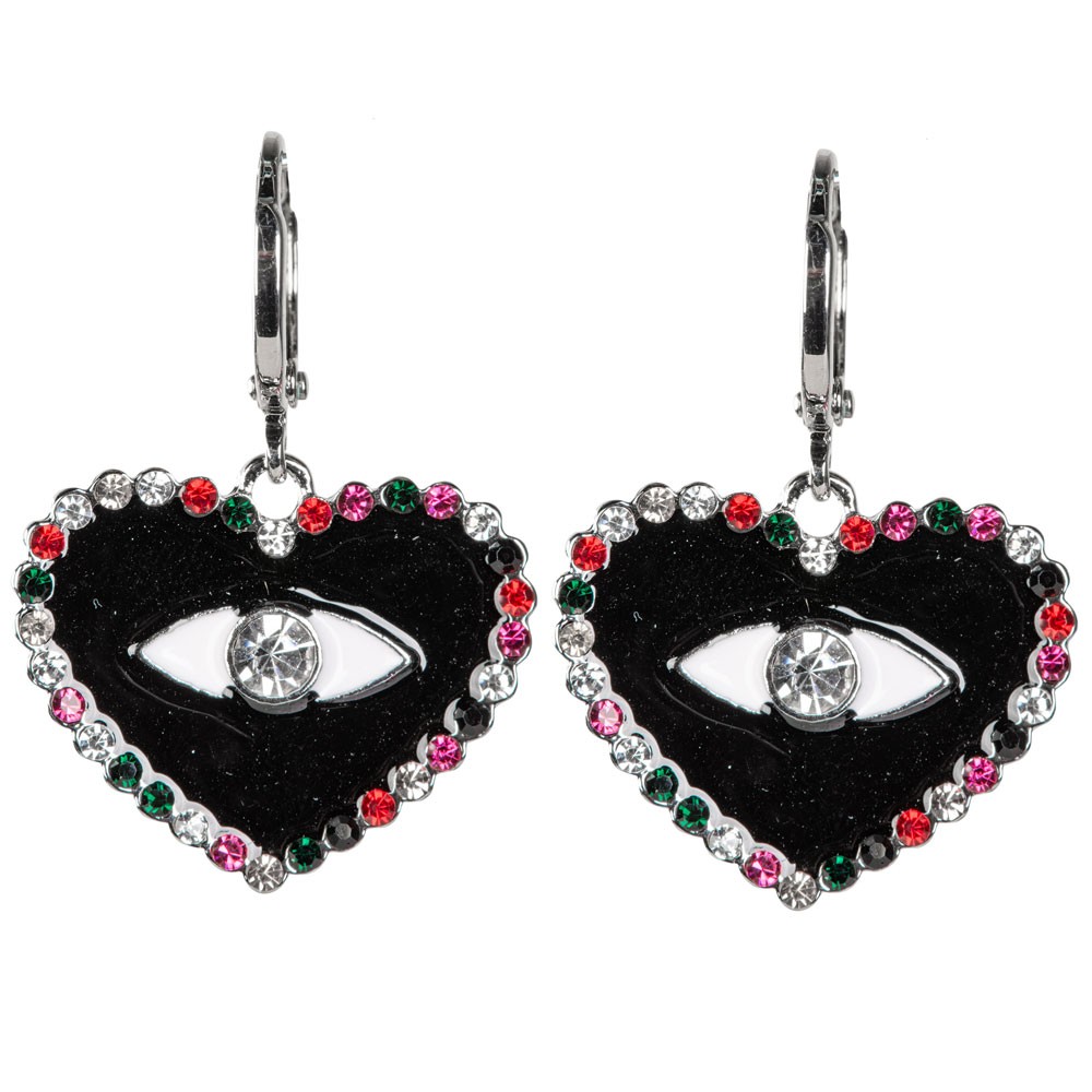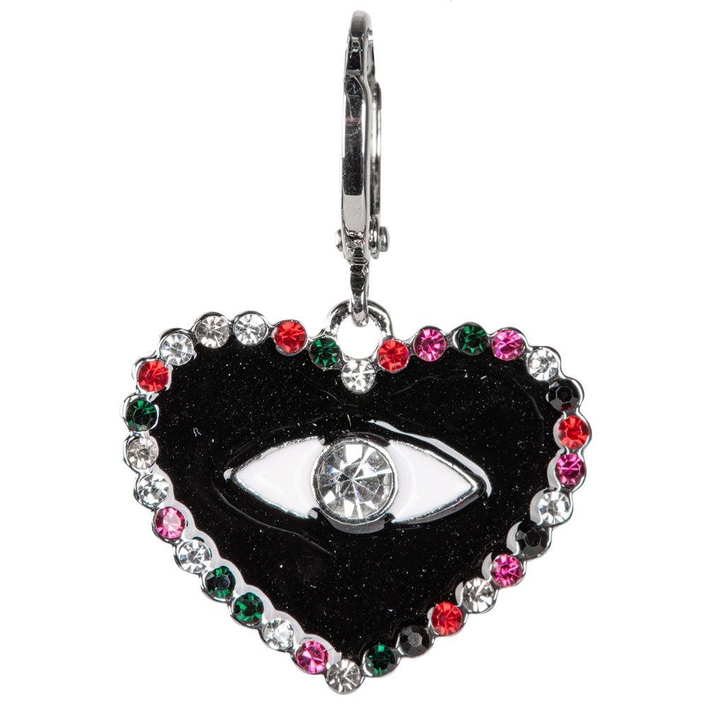 HEART SHAPED EVIL EYE WITH RHINESTON AND SILVER FINISH