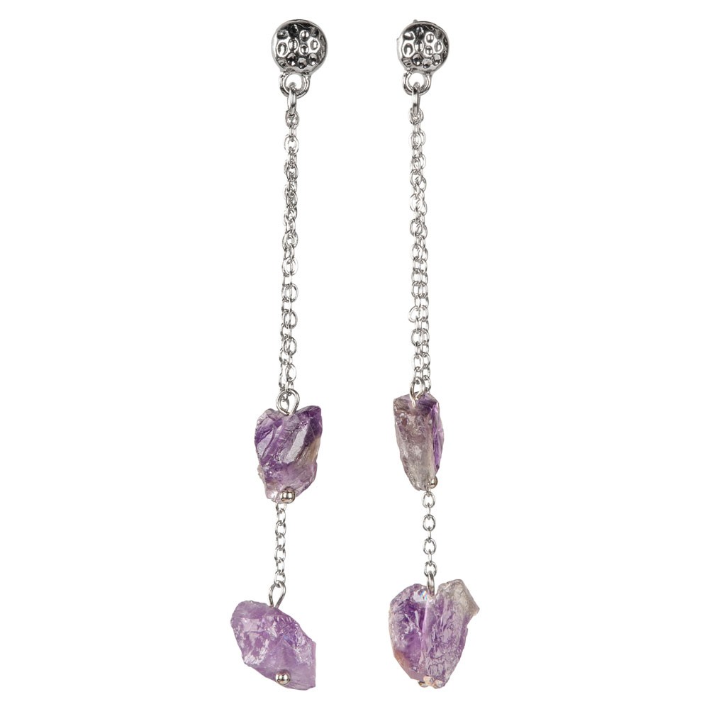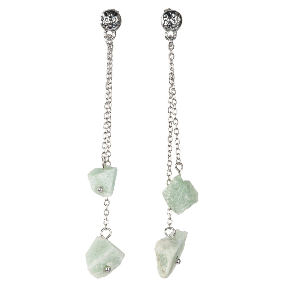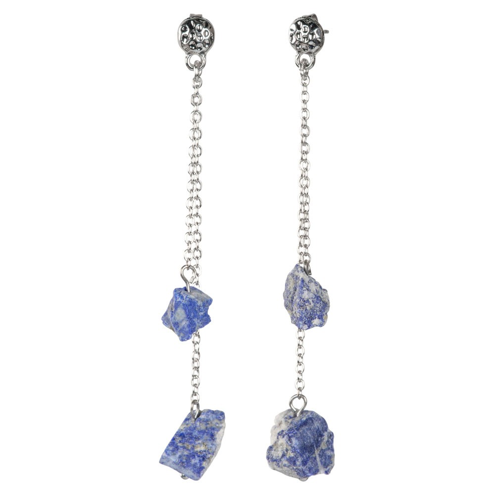 DANGLE EARRINGS WITH ROUGH STONES AND SILVER FINISH