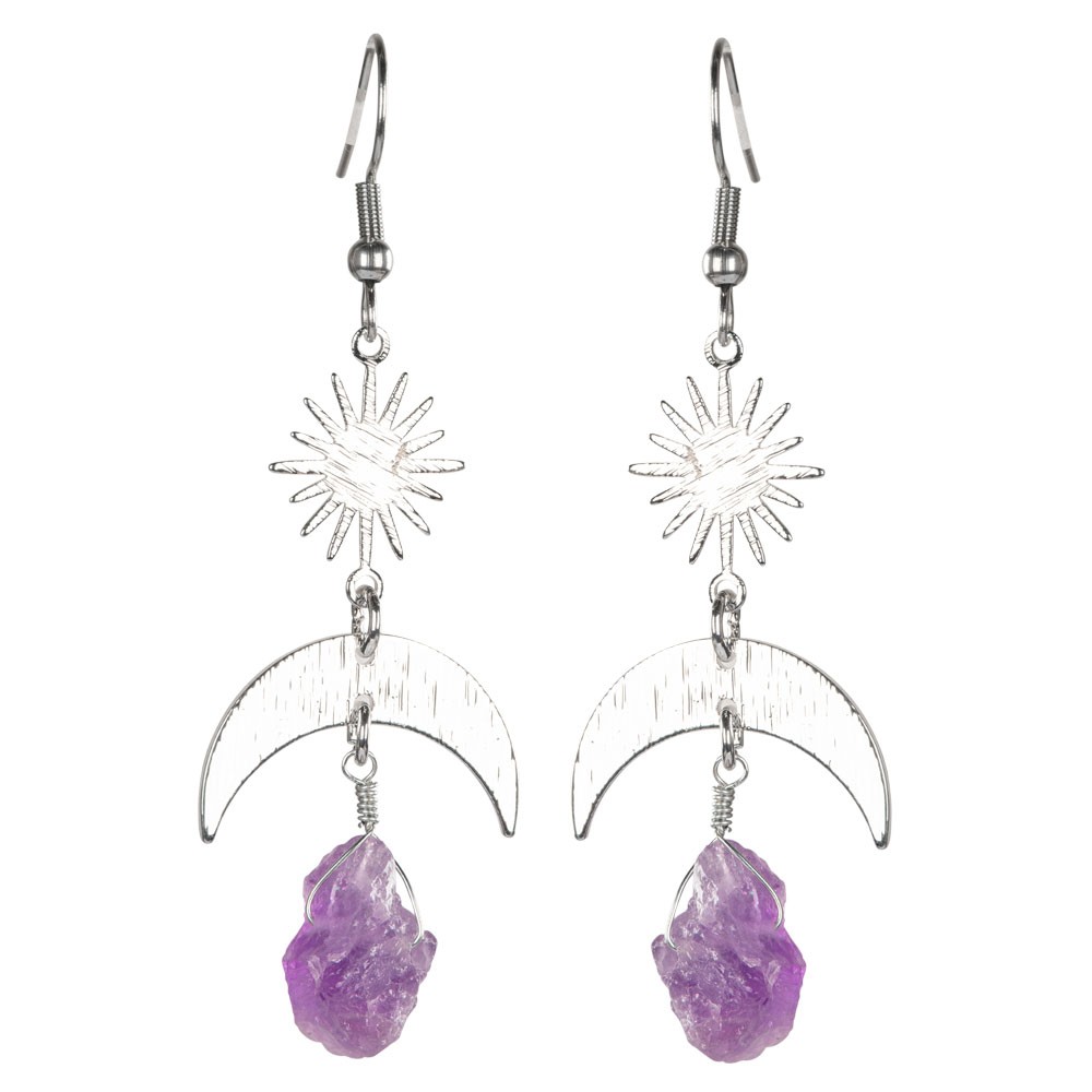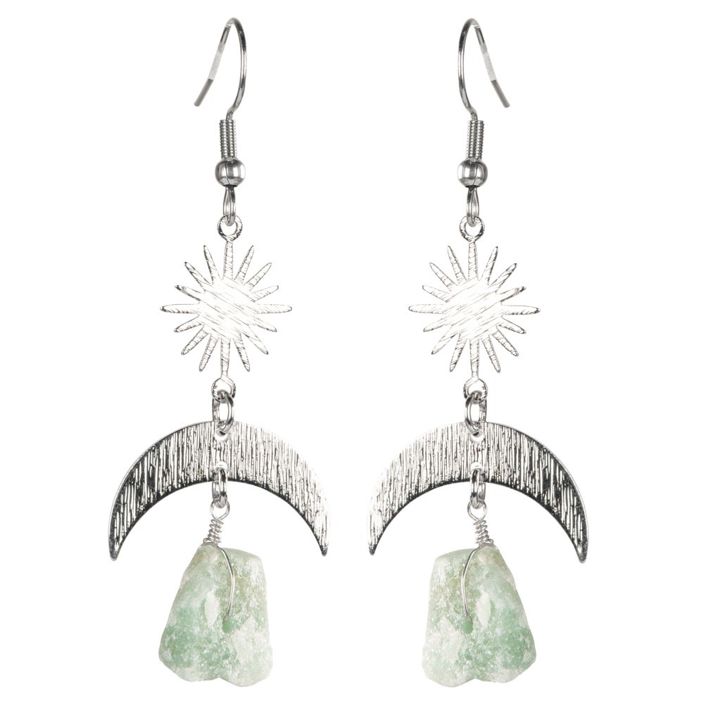 SUN AND MOON EARRINGS WITH ROUGH STONES AND SILVER FINISH