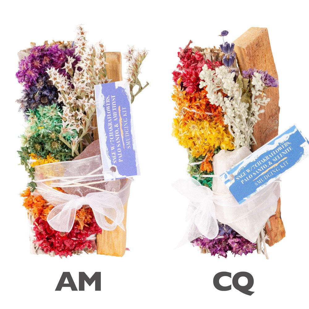 SAGE WITH 7 CHAKRA FLOWERS, PALO SANTO, AND GEMSTONE SMUDGE KITS
