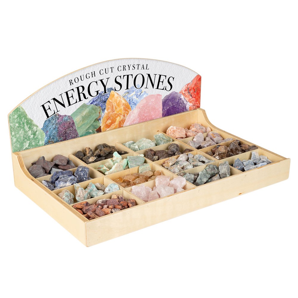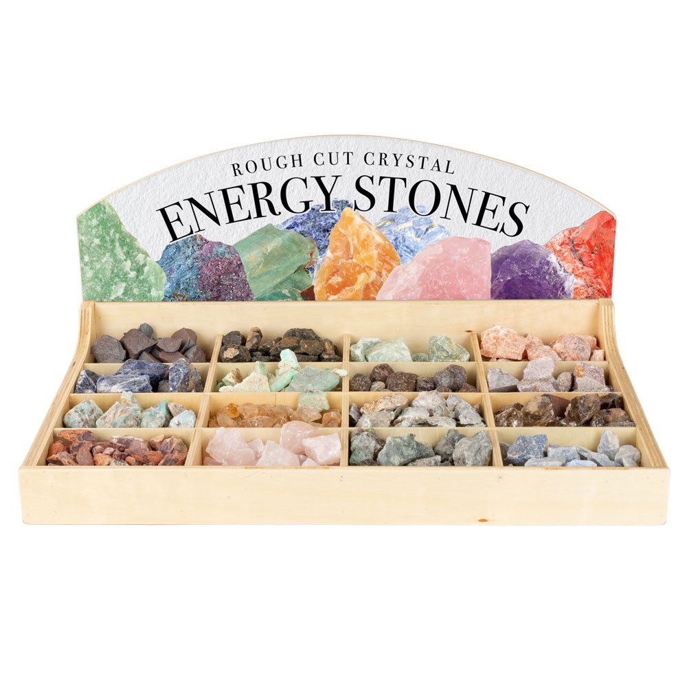 Includes 16 Pounds of rough stones, display & description cards. Display size 19”-11.5”. Each of the 16 slots holds one pound