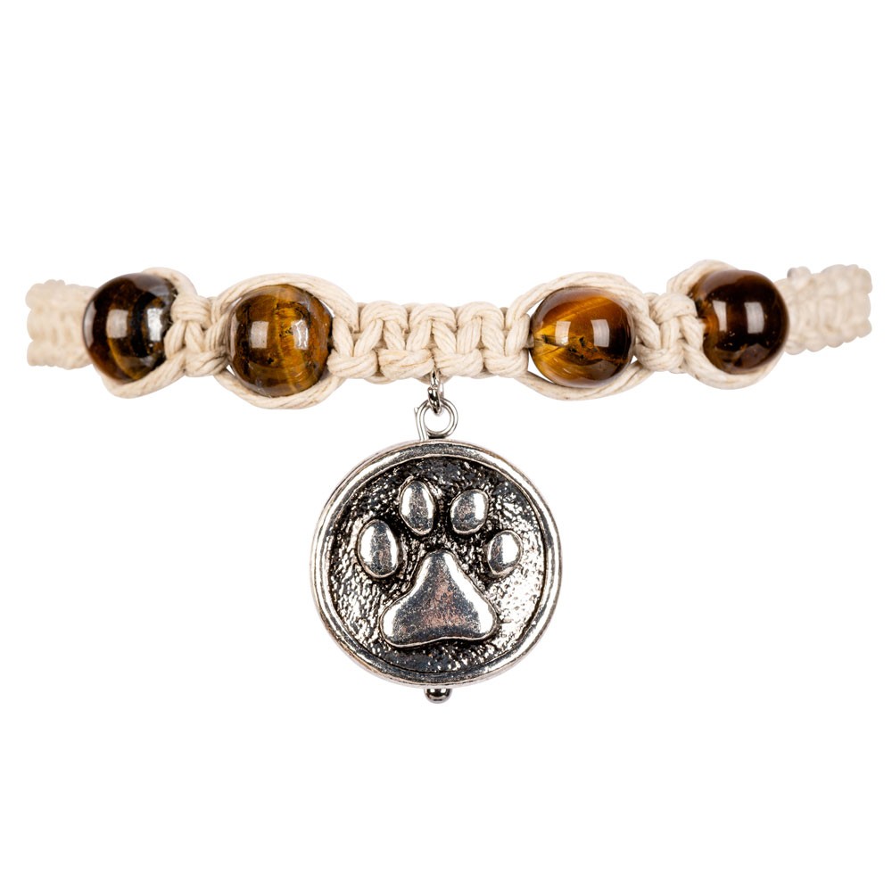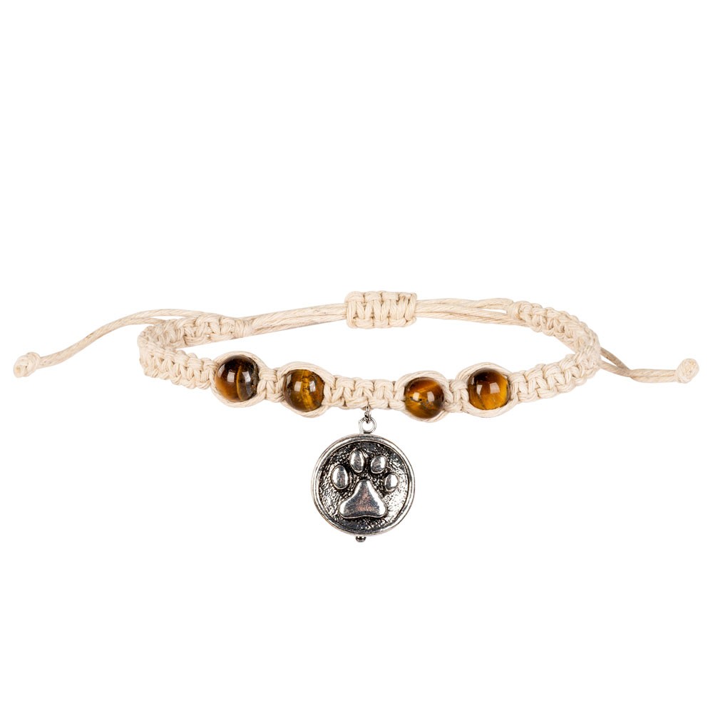 PAW PRINT CHARM HEMP BRACELET WITH TIGER EYE BEADS