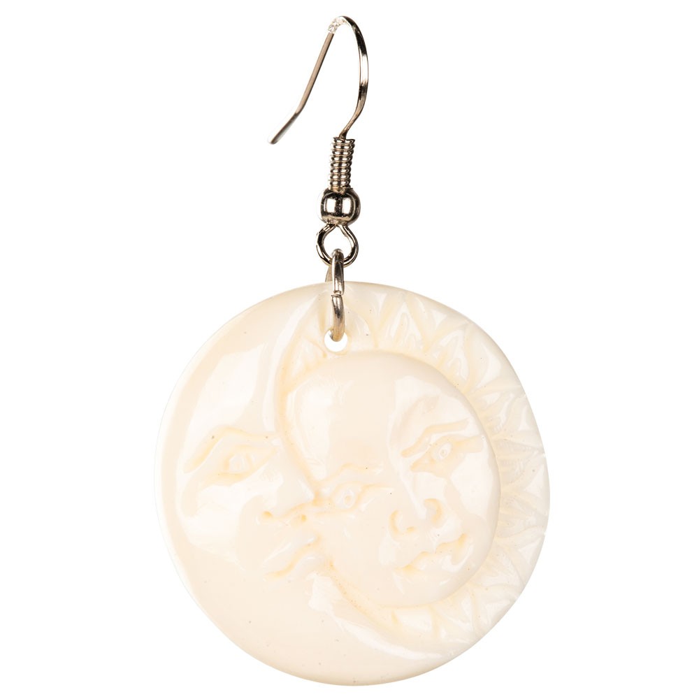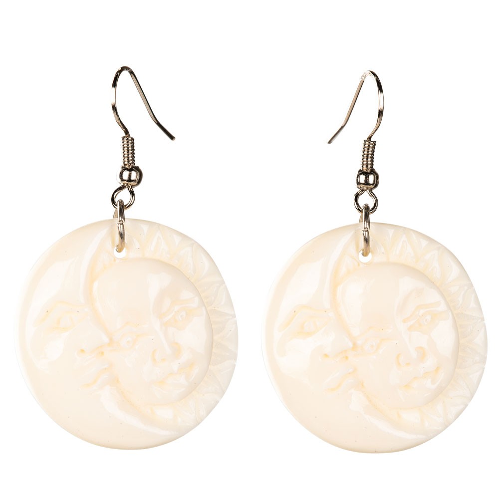 SUN & MOON WHITE CARVED BONE EARRINGS