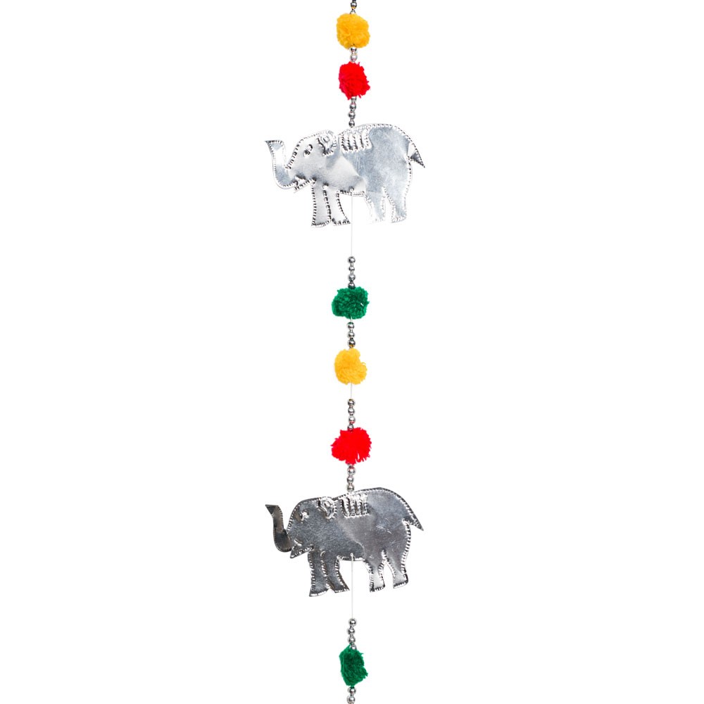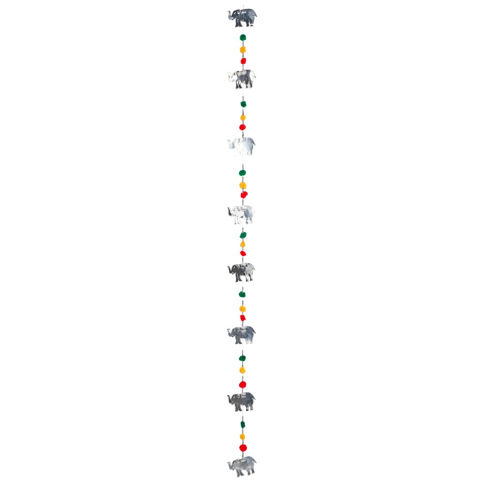 ELEPHANT TIN GARLAND WITH POM POMS AND TIN BOX