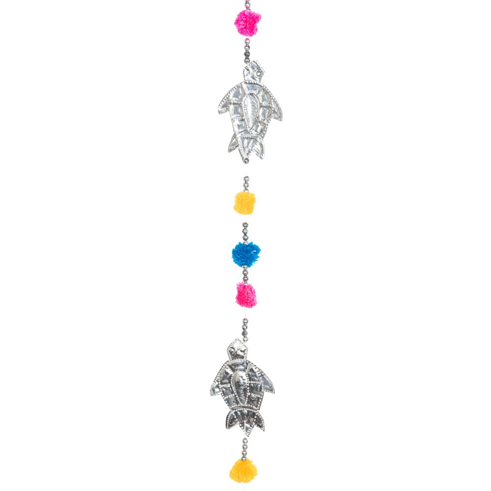 TURTLES TIN GARLAND WITH POM POMS AND TIN BOX