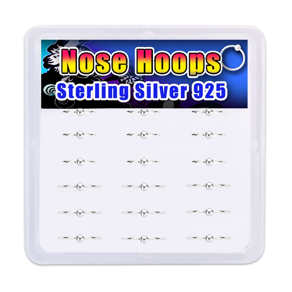 18 PIECE SILVER NOSE HOOP DISPLAY