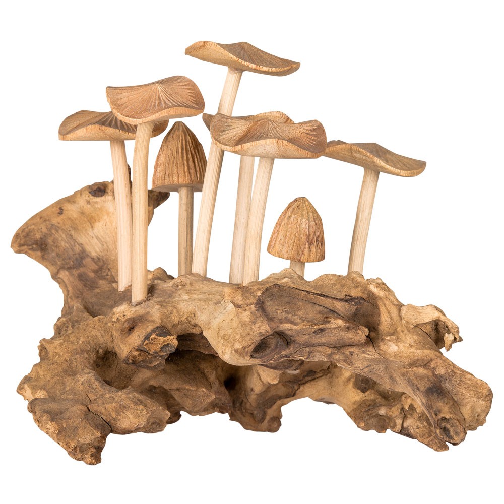 WOODEN CLUSTER OF MUSHROOMS ON DRIFTWOOD