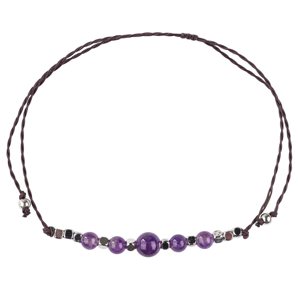 AMETHYST AND SILVER BEAD BRACELETS (4 PACK)