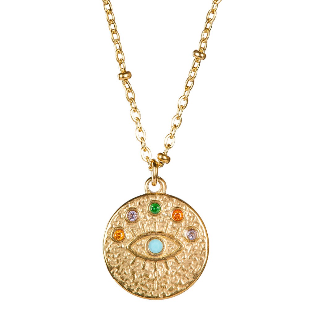 GOLD TONES ROUND EVIL EYE NECKLACE