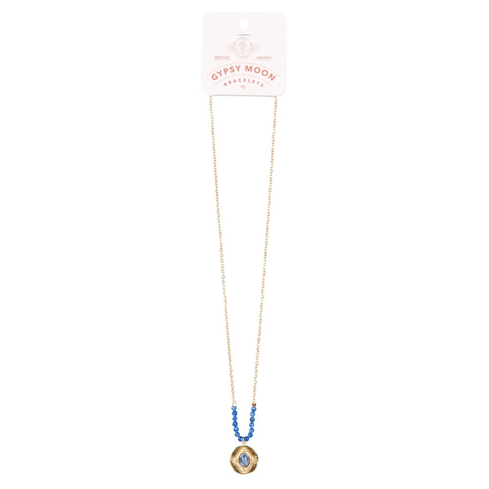 GOLD TONES NECKLACE WITH LAPIS BEADS AND PENDANT