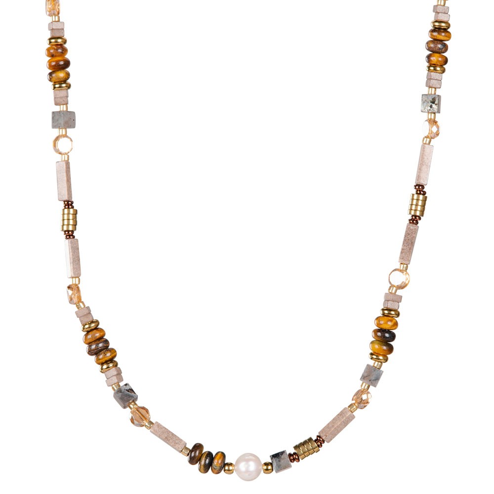 MIXED STONES NECKLACE WITH TIGER EYE BEADS