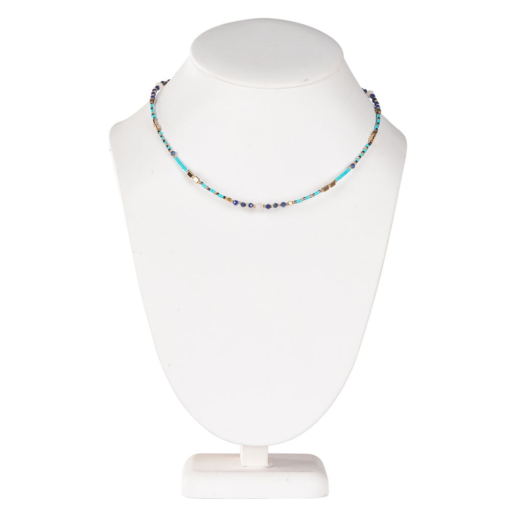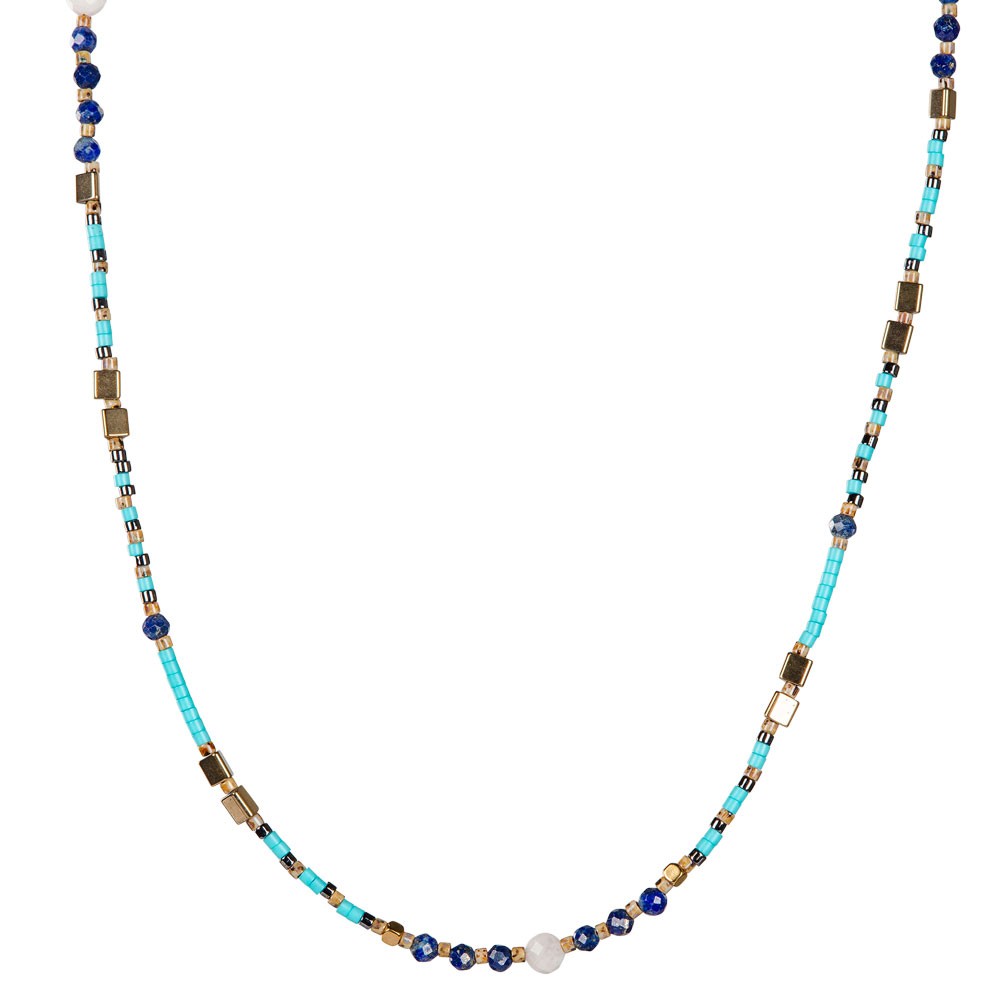 MIXED STONES NECKLACE WITH TURQUOISE AND LAPIS BEADS
