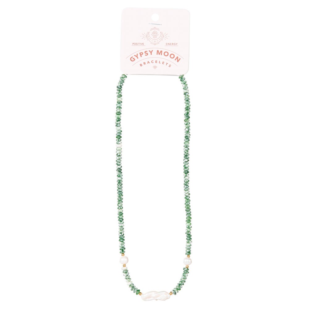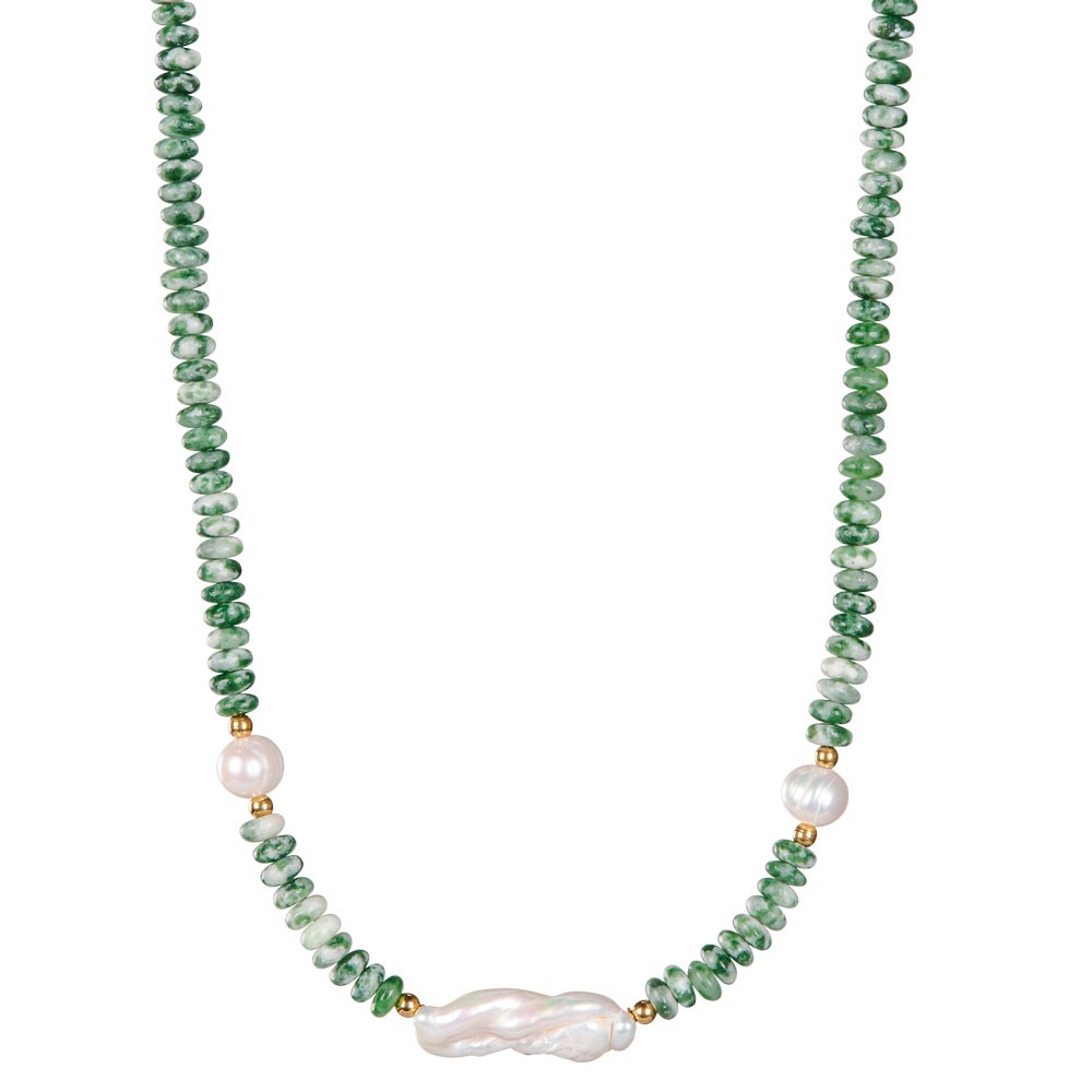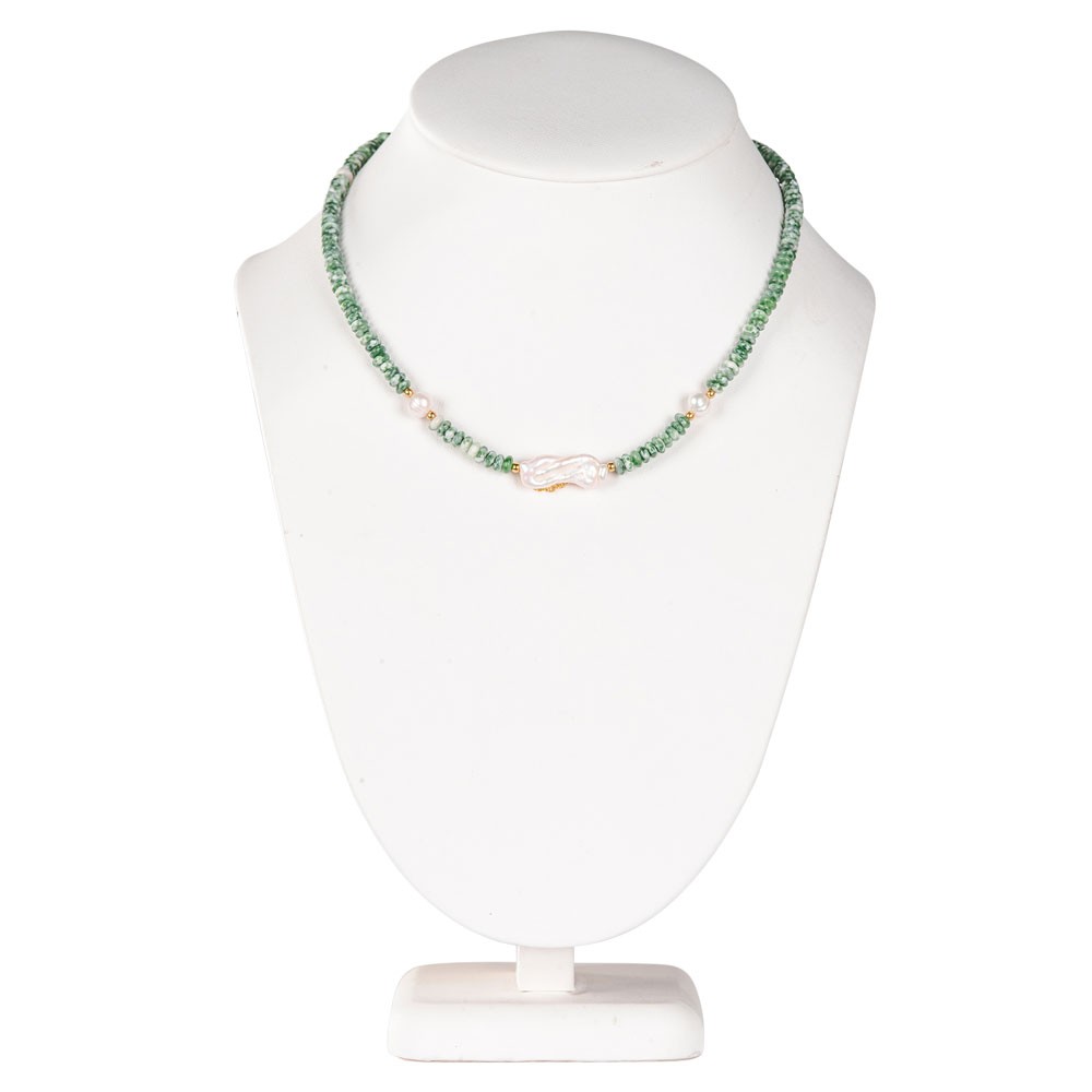 MOSS AGATE BEADED NECKLACE WITH PEARLS