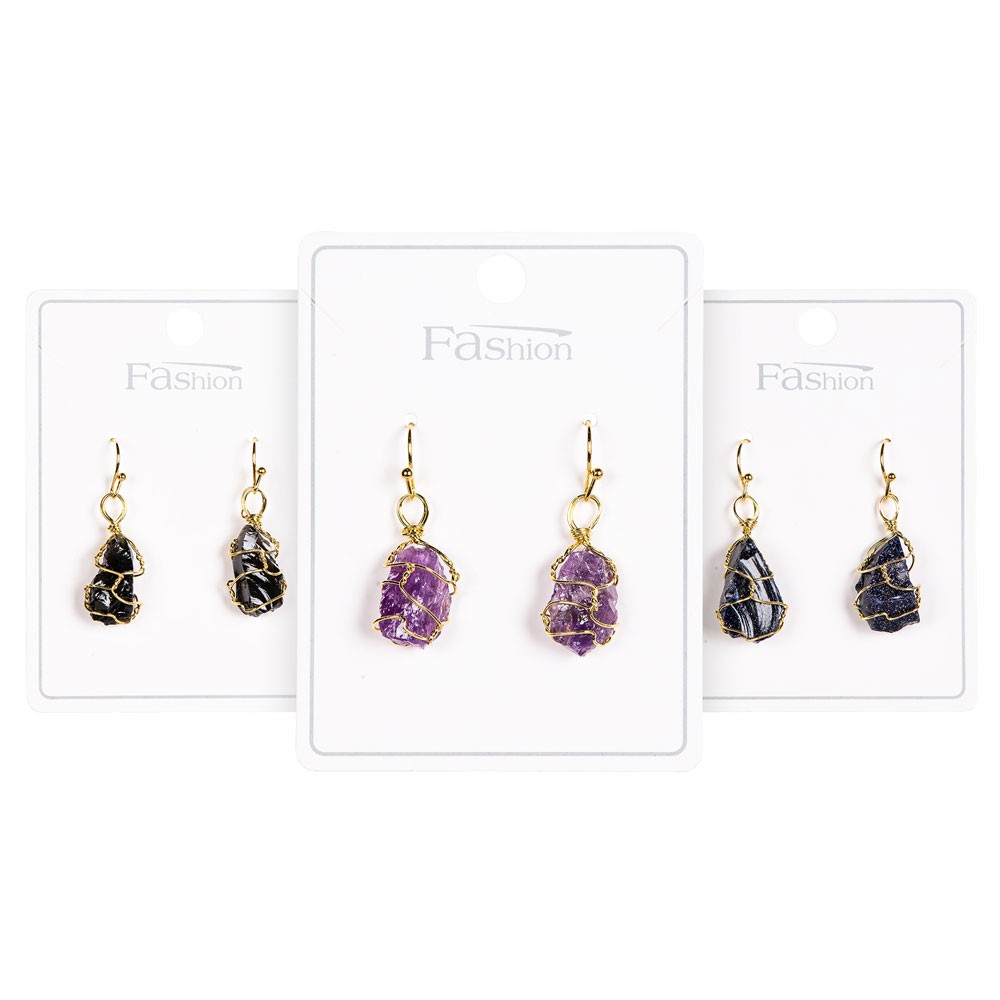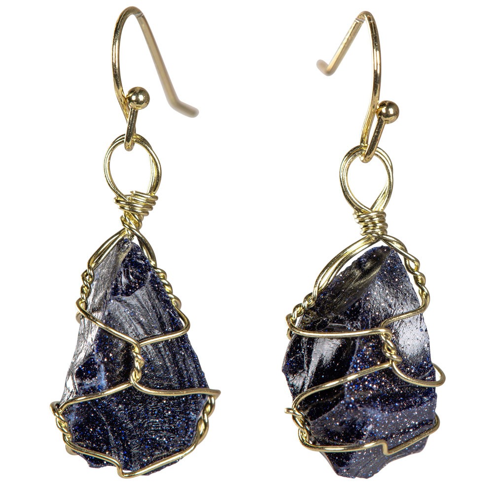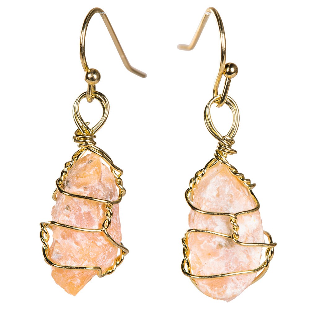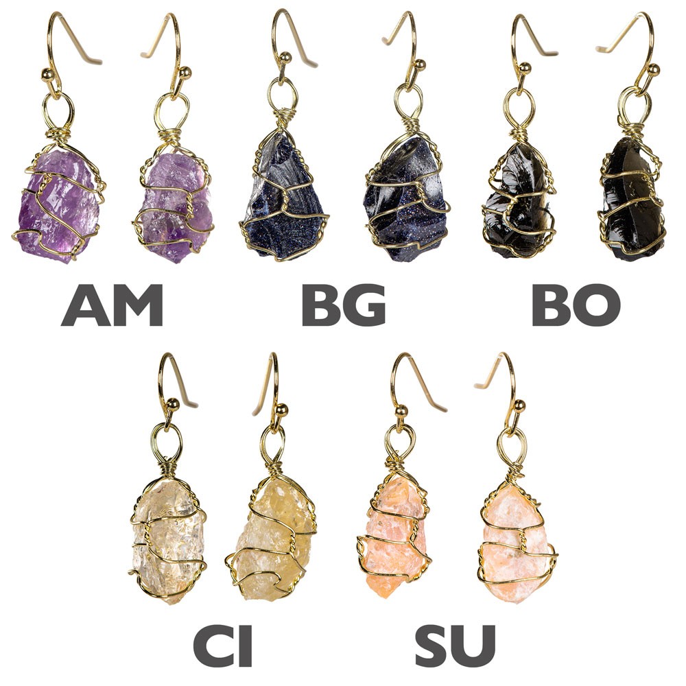WIRE WRAP ROUGH STONE AND GOLD EARRINGS