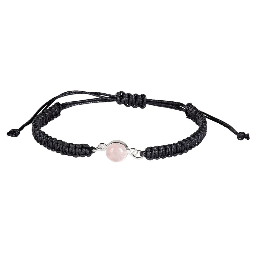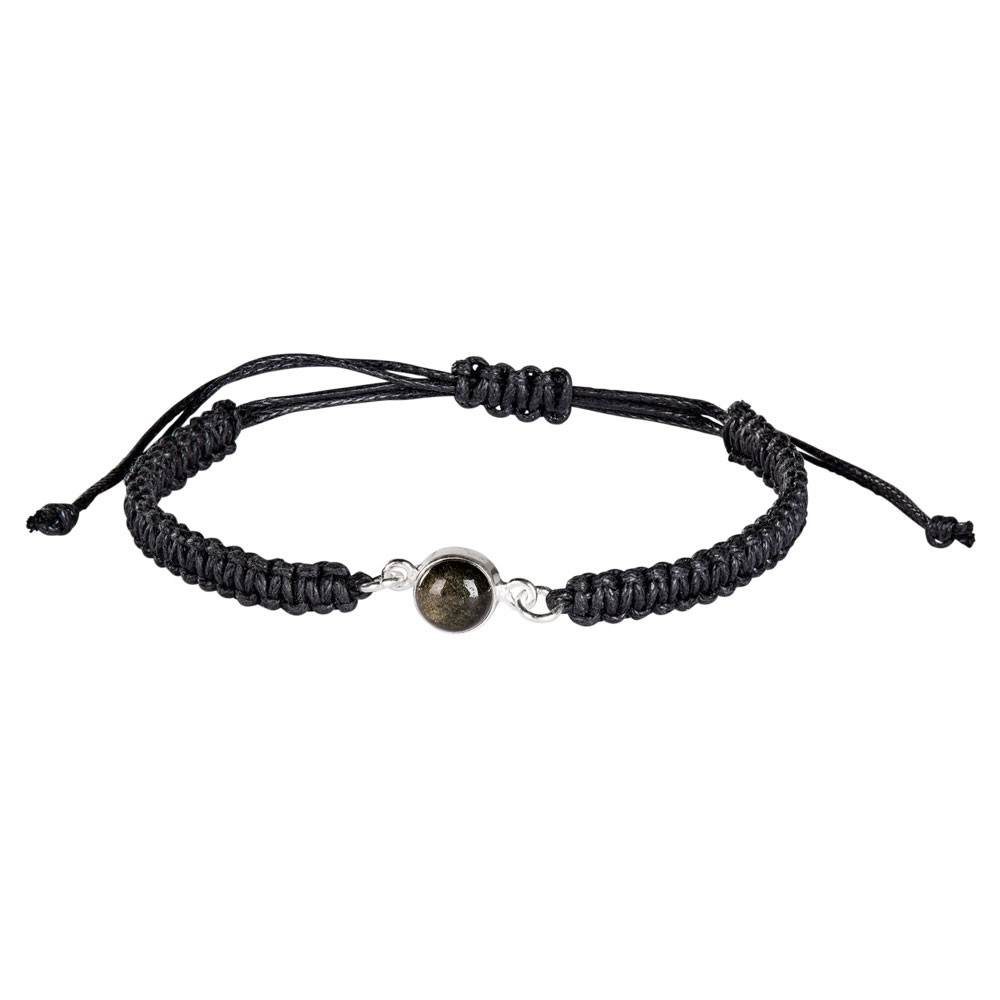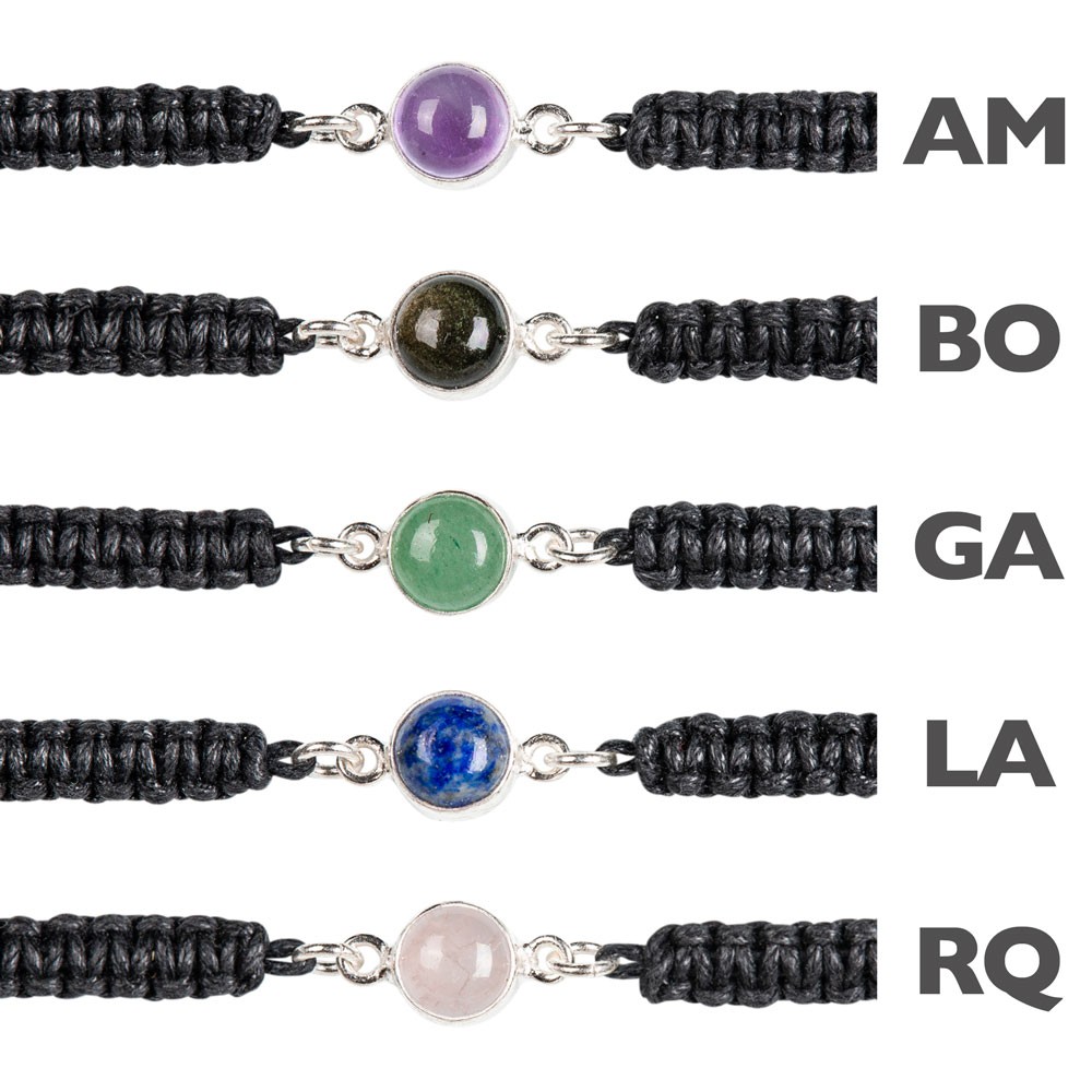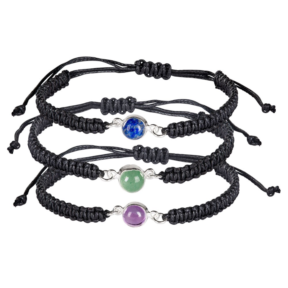 STERLING SILVER PULL TIE BLACK CHORD BRACELET WITH GEMSTONE
