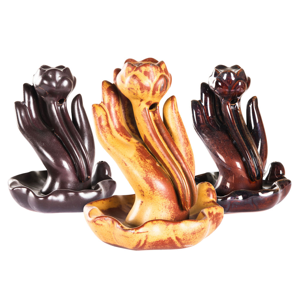 MUDRA HAND WITH LOTUS WATERFALL BACKFLOW CONE BURNER